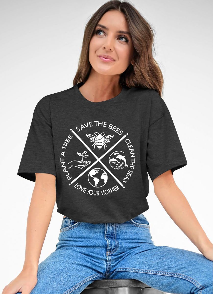 PECHAR Earth Day Shirts for Women Protect The Environment T-Shirts Bees Graphic Short Sleeve Blouse TopsEnvironmentalism shirts, protect earth shirts, animals t-shirts, protect seas tshirts, cute unique bees graphics shirts tops, loose fit shirts tees, chic short sleeve blouse tops is suitable for all people.