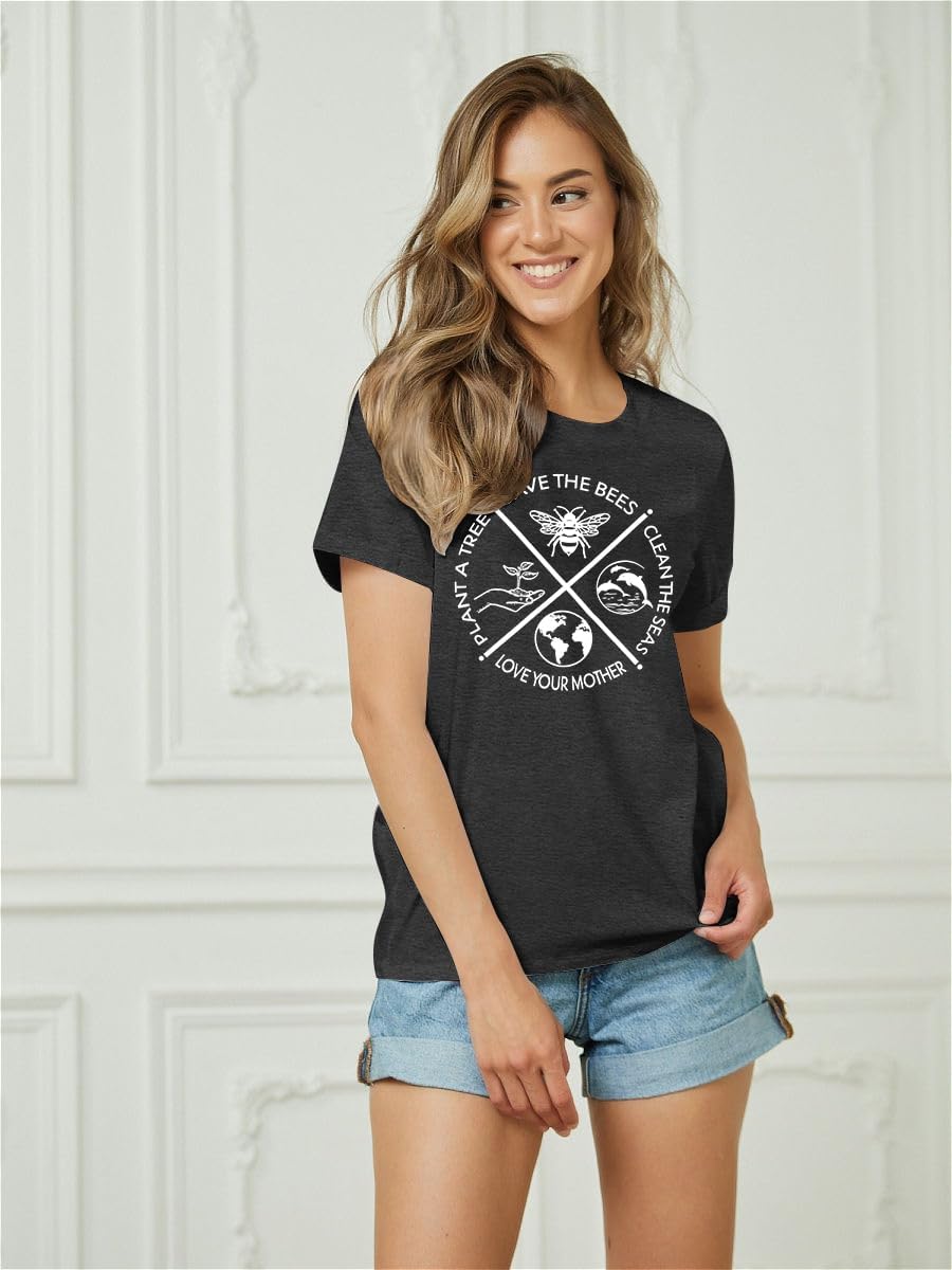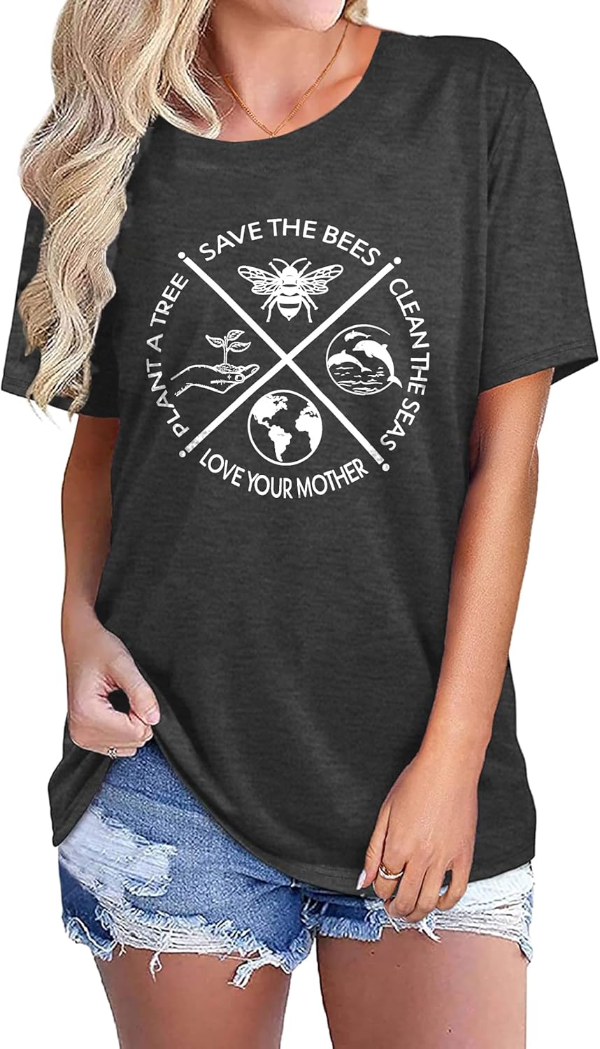 PECHAR Earth Day Shirts for Women : Protect The Environment T-Shirts Bees Graphic Short Sleeve Blouse Tops