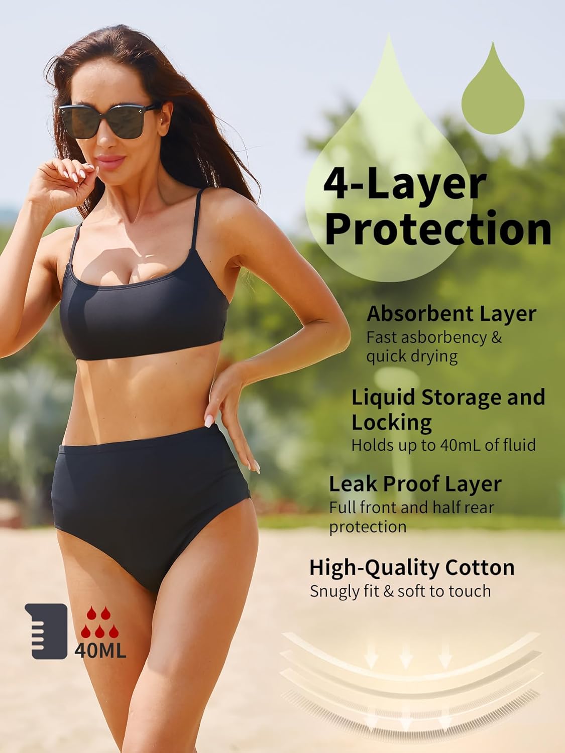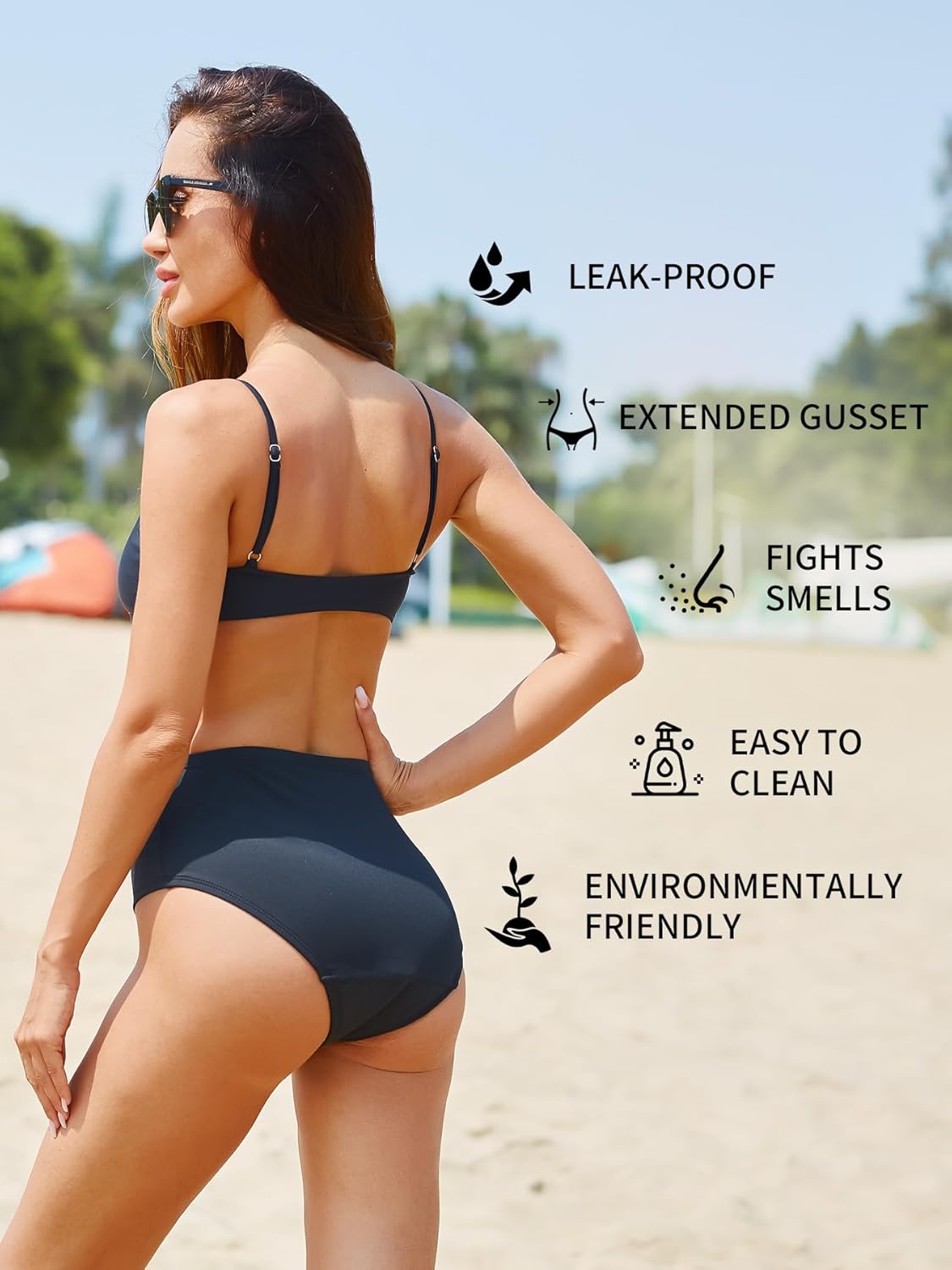 Period Swimwear-Menstrual Swimsuit Bikini Bottoms-High Waisted Leakproof Swim Bottoms for Teens Girls and Women.