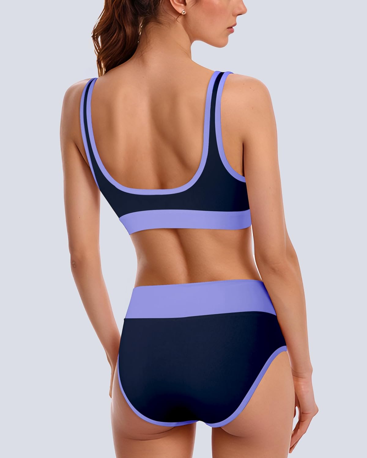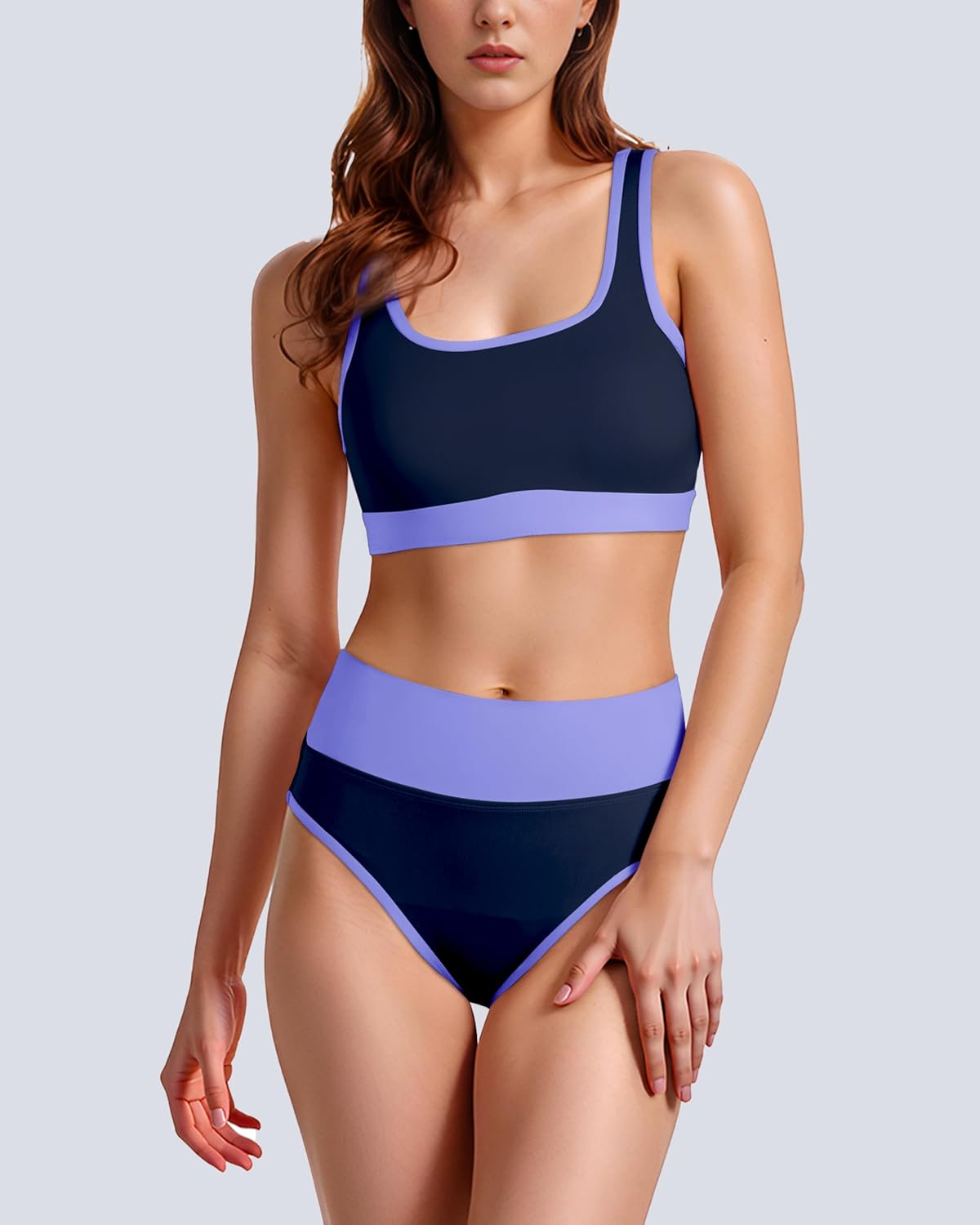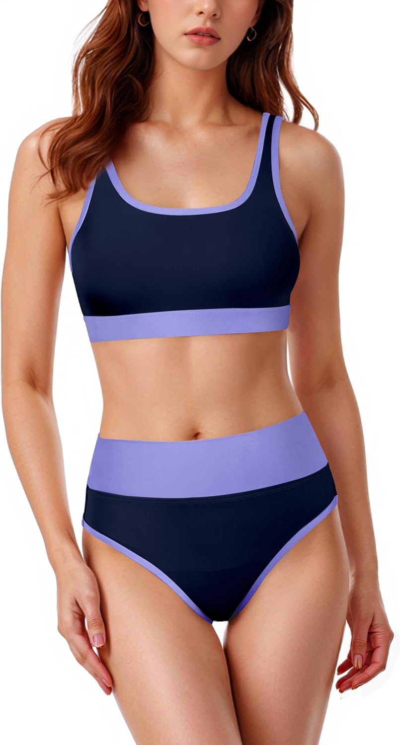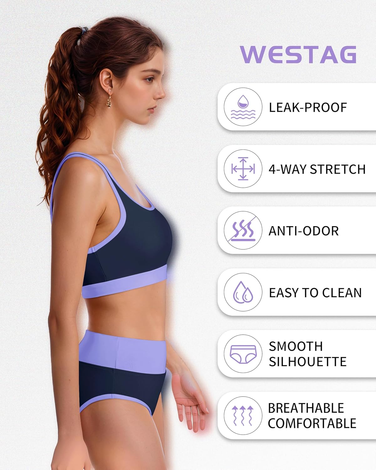 Period Swimwear Two Pieces Leakproof Swimsuit Menstrual High Waist Sporty Bikini Sets Color-Block Bathing Suit for Teen Girl