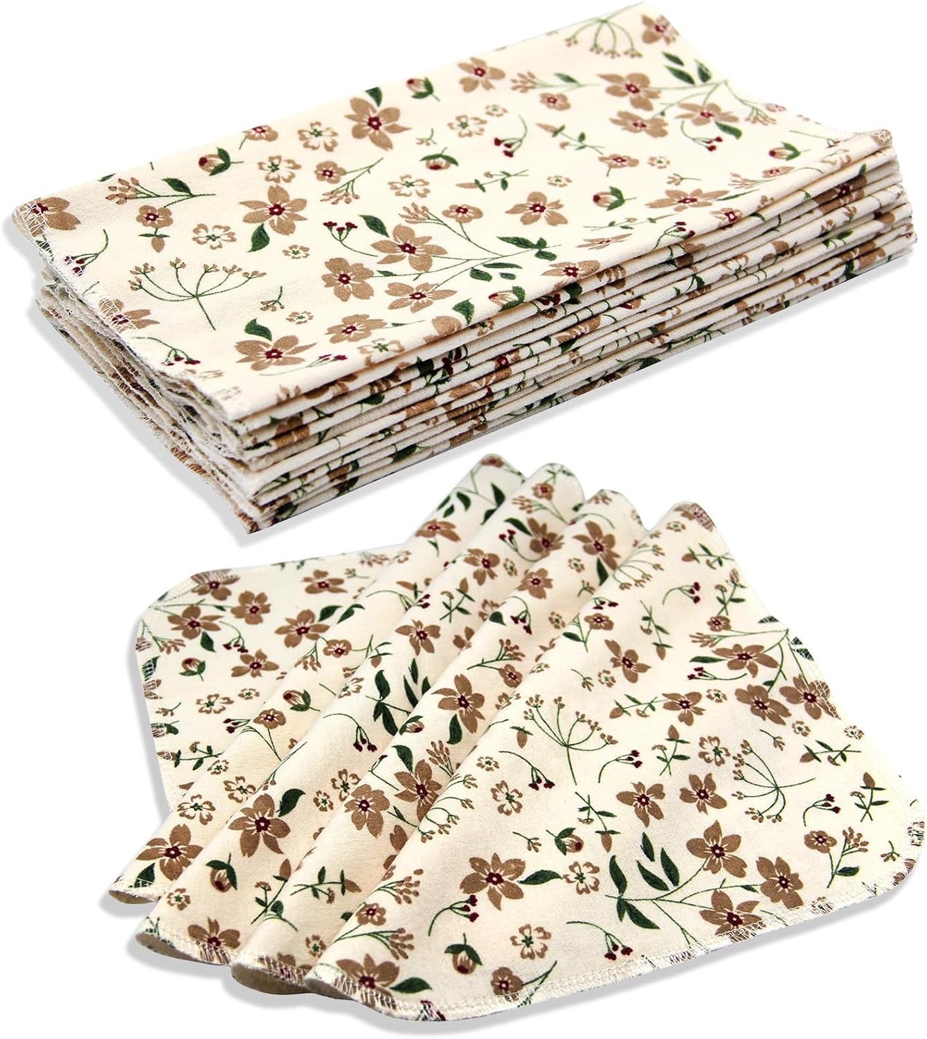 [PREMIUM COTTON MATERIAL] – The cleaning cloth towels are made from 100% cotton fabric with fashion print, the texture of cotton makes it more absorbent than other towels like those made of microfiber, these napkins cloth is washable, chemical free, making it safe to use for the whole family. PLEASE GIVE COTTON A CHANCE TO ACHIEVE ABSORBENCY AFTER 3 WASHES.