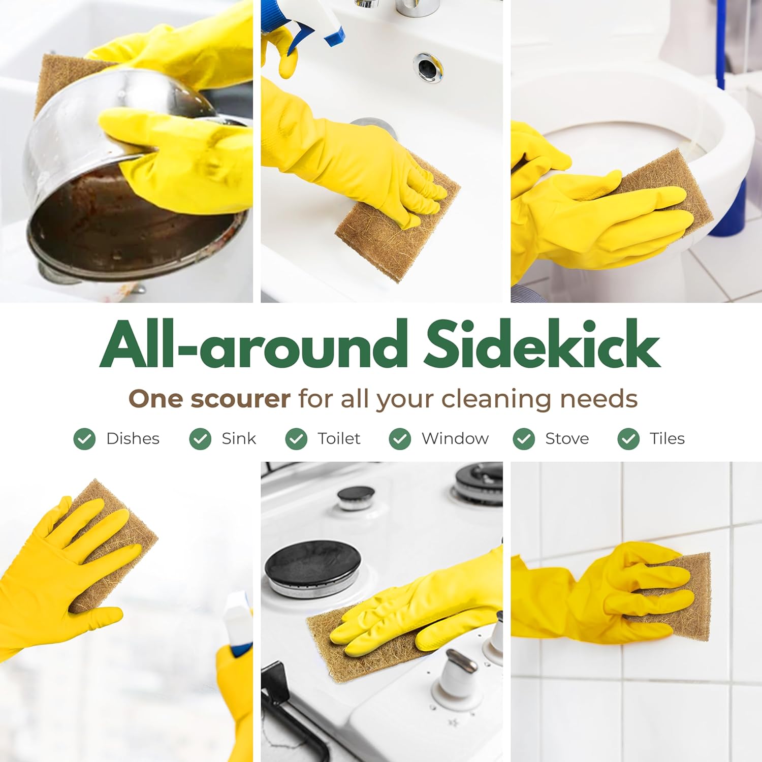 NATURAL SCRUBBER FOR DISHES – Airnex’s heavy duty dish scrubber pads are made with coconut fibers binded together with recycled fibers for a mix of great cleaning performance and care for the environment. These scrubbing pads for dishes make it easier than ever to go green in the kitchen!