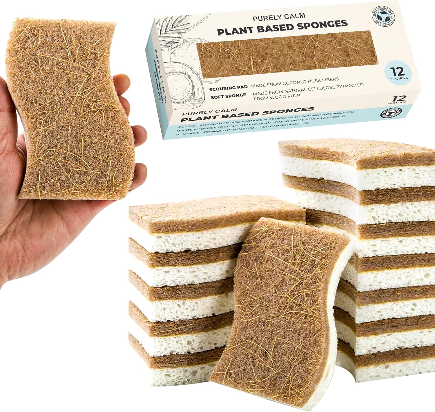 PURELY CALM NATURAL SPONGES FOR A HEALTHIER HOME: Our plant-based kitchen sponges for washing dishes are crafted for eco-conscious families, providing a safe, sustainable alternative for everyday cleaning. Made with love and care for your home and the planet.
