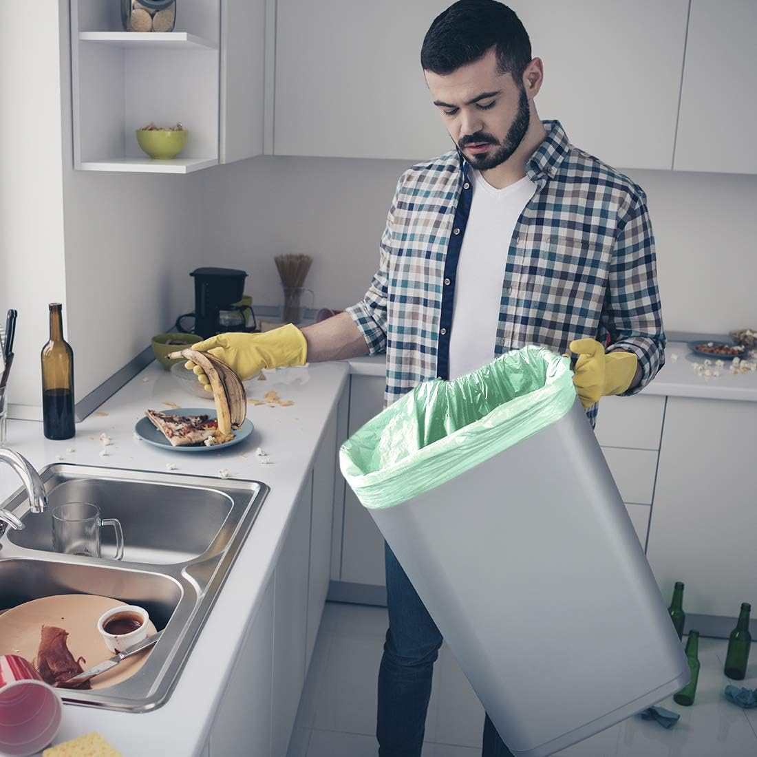 COMPOSTABLE: The food waste bags are fully compostable. Ideal to use for kitchen trash bag, food waste collection bag, bag comes With A Fresh Natural Light Green color