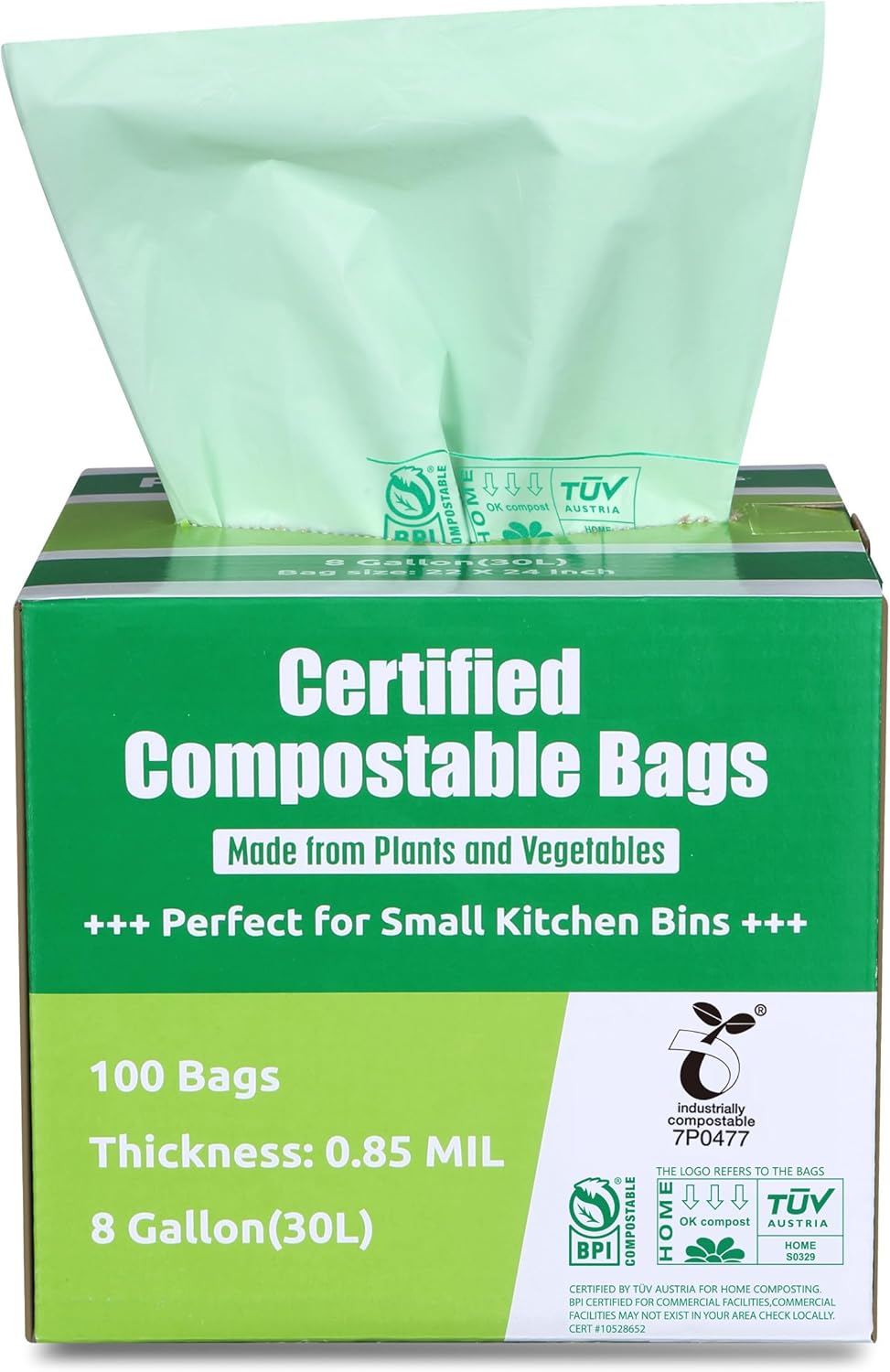 8 GALLON SIZE: Each of our compost bags has a capacity of 8 gallons, Measures 22 x 24 inch Extra Thick 0.85 Mil pack of 100.