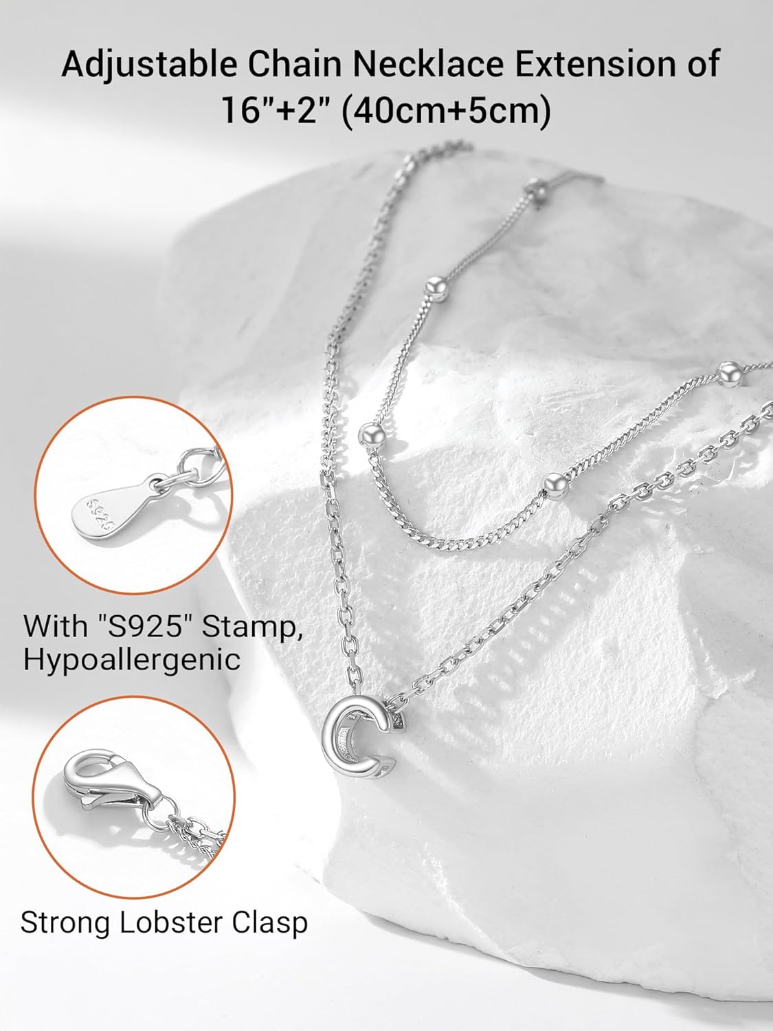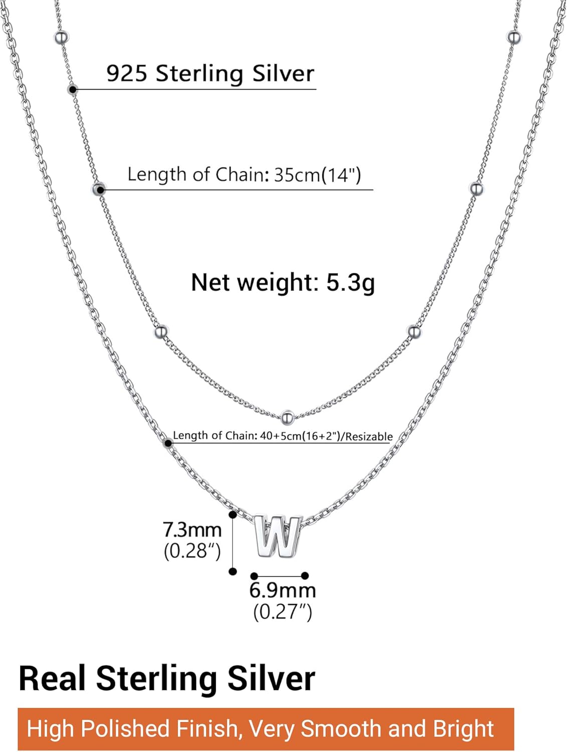 PROSILVER S925 Sterling Silver Necklace for Women Layered Initial Pendant Necklaces Women’s Dainty Silver Chain Trendy Charm Necklace Letter A-Z