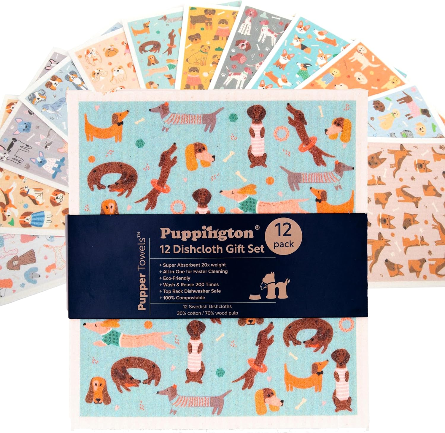 Pupper Towels 12 Pack Swedish Dishcloths for Kitchen – Dog Dish Towels – Swedish Dish Cloths for Kitchen – Dog Mom Mothers Day Gifts for Women – Eco Friendly (12 Breeds)