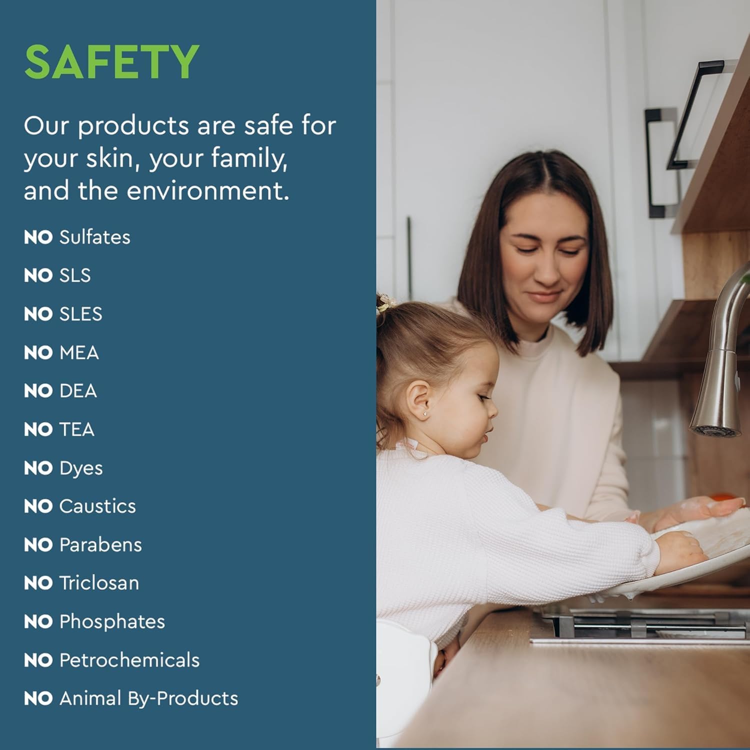 No Skin Damaging Chemicals – Experience the gentle care of our plant-powered baby safe dish soap non toxic formula. No sulfates (SLS, SLES, SCS), triclosan, parabens, petrochemicals, animal by-products, perfumes, or caustic ingredients that dry out and irritate your skin.