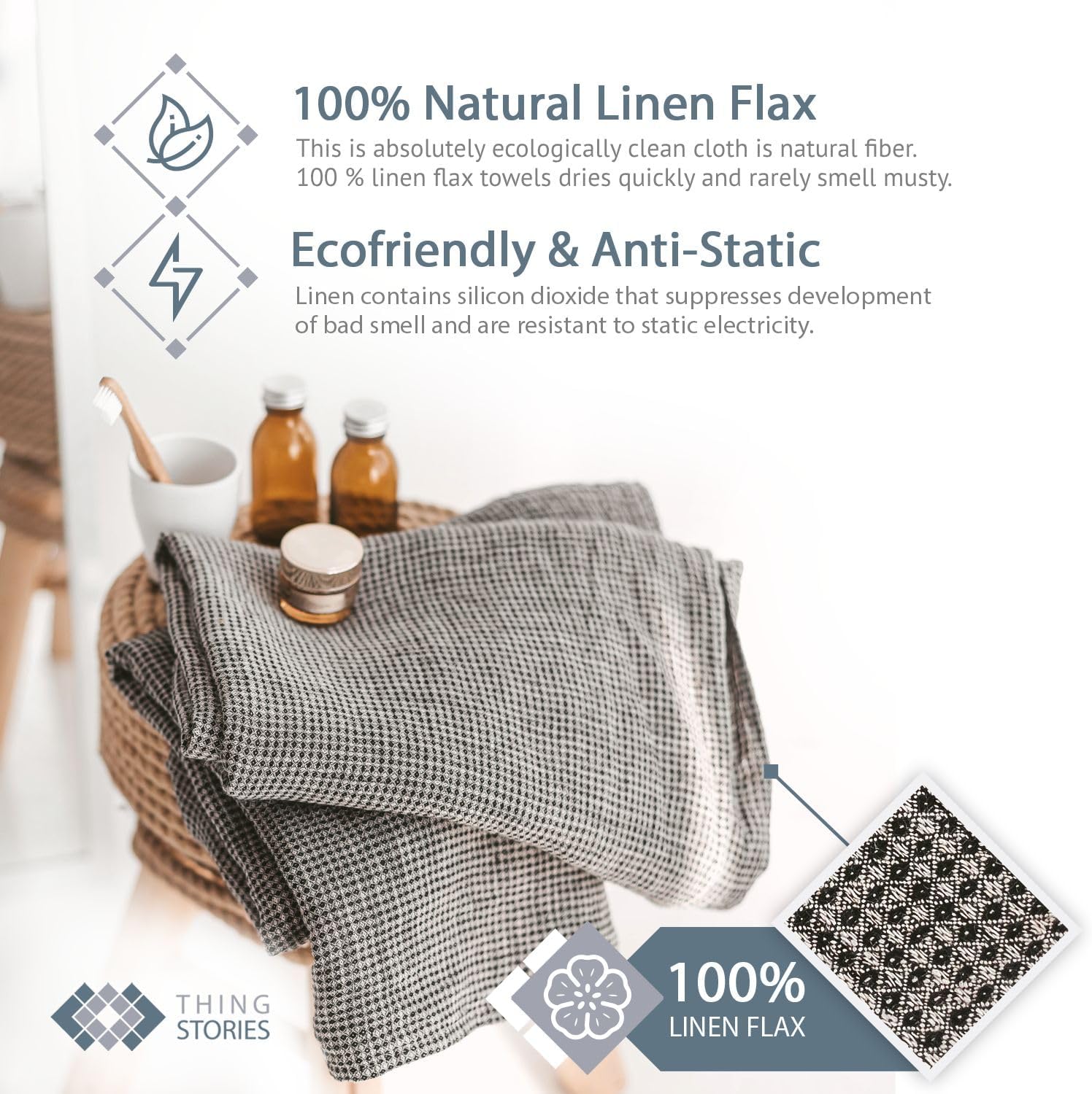 100% Linen and Comfortable: These black waffle bath towels are made from 100% flax linen, making them naturally rough and exfoliating, yet soft and comfortable even for sensitive skin. They become even softer after each wash.