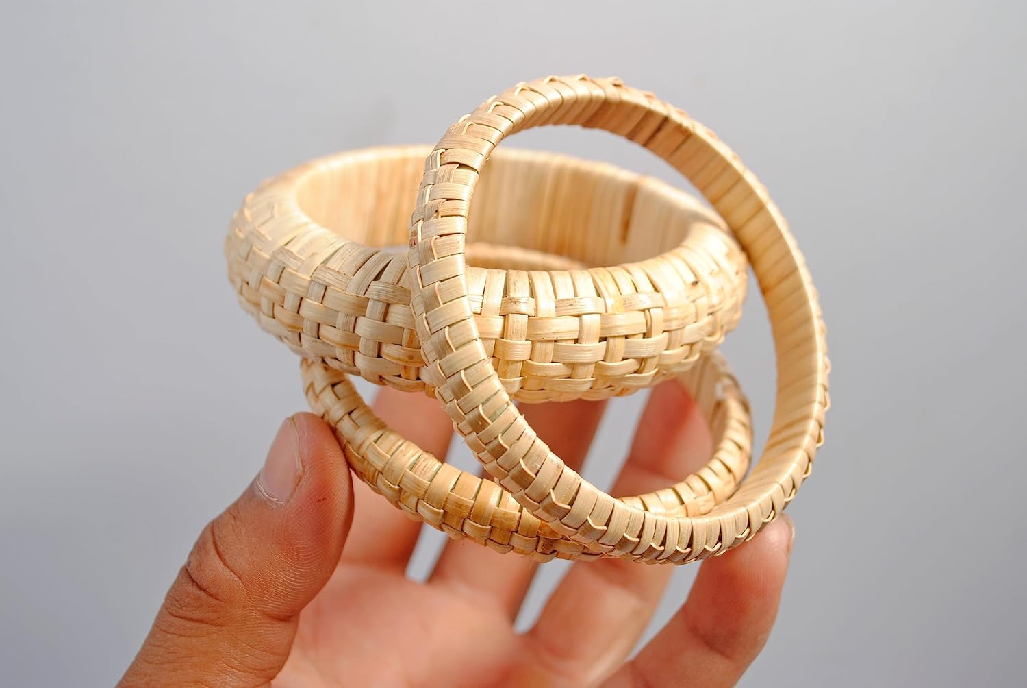Pure Hands Handwoven Cane Bangle Set Half-Round Eco-Friendly Jewelry Studio – 3-Piece Rattan Bracelet Set for Women – Sustainable Fashion Accessories
