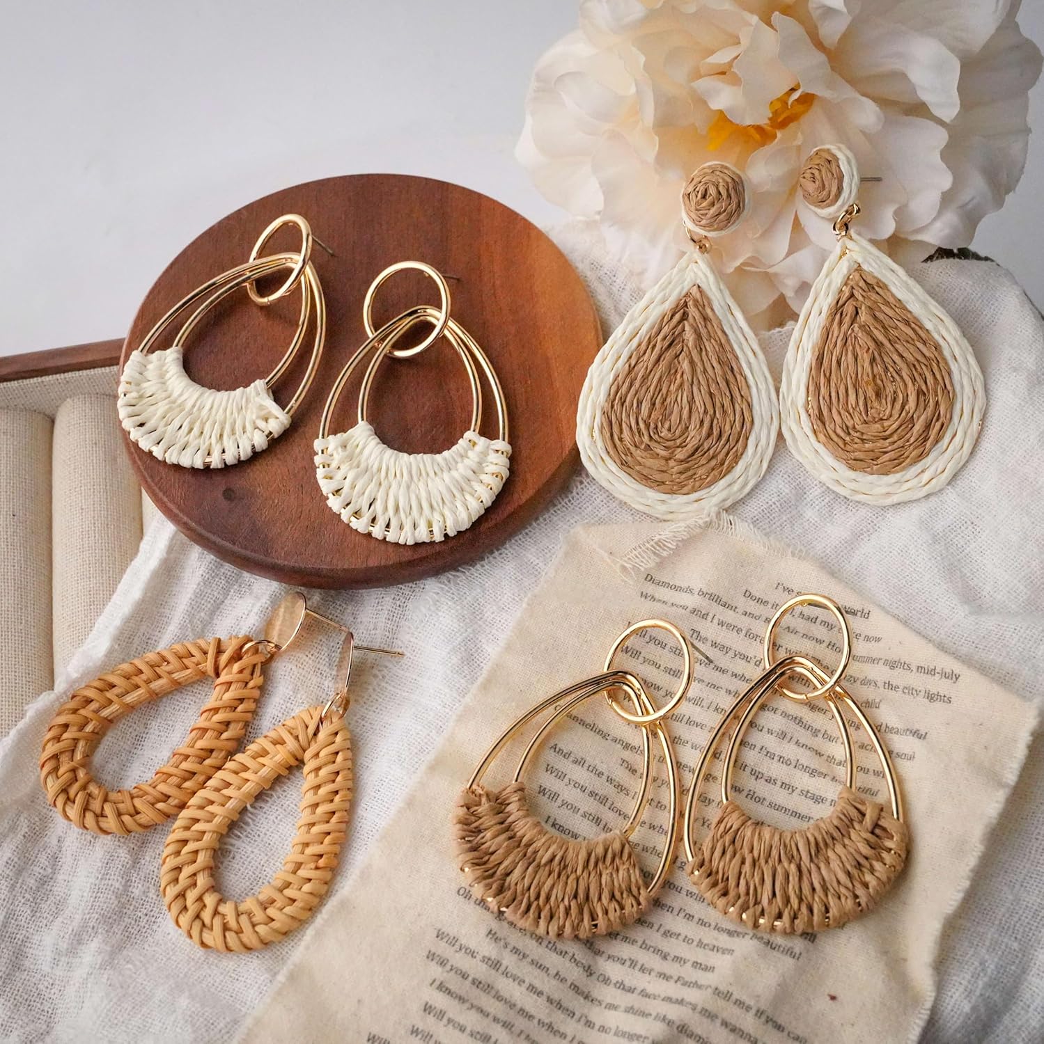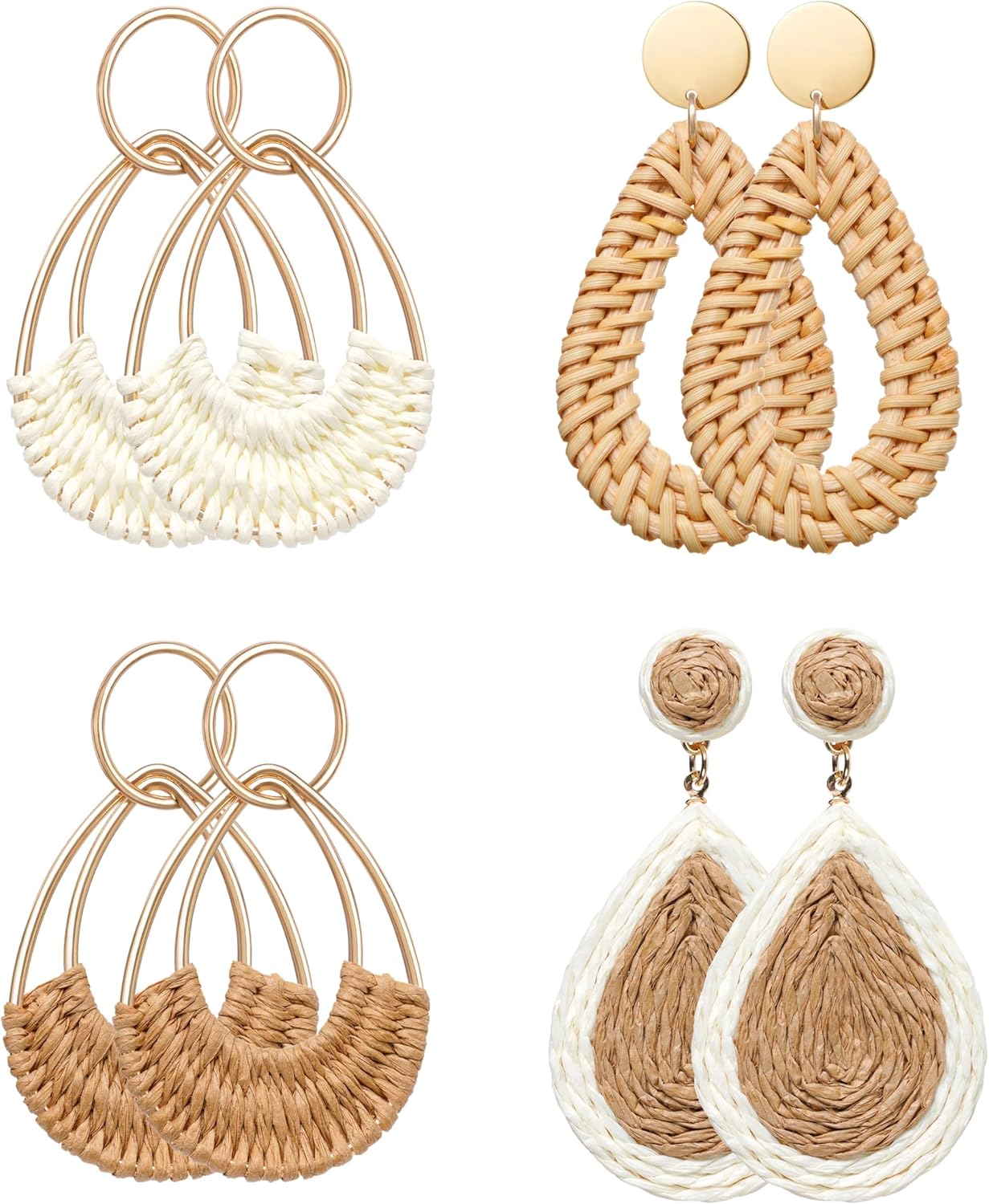 Raffia Hoop Earrings for Women Fun Boho Summer Beach Earrings Lightweight Handmade Straw Wicker Rattan Dangle Earrings Statement Geometric Round Drop Earrings