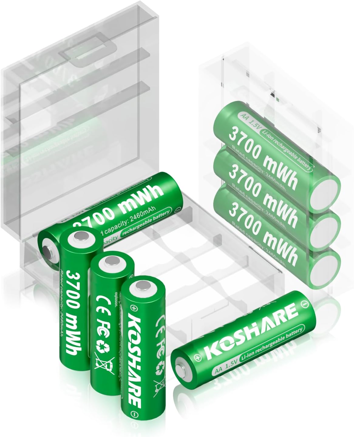 Rechargeable Battery Lithium AA with 2 Plastic Boxes,8 Pack 1.5V 3700mWh AA Batteries,Long-Lasting Leak-Proof Double A Li-ion Battery for Electronic Devices (8AA+2 Plastic Boxes)