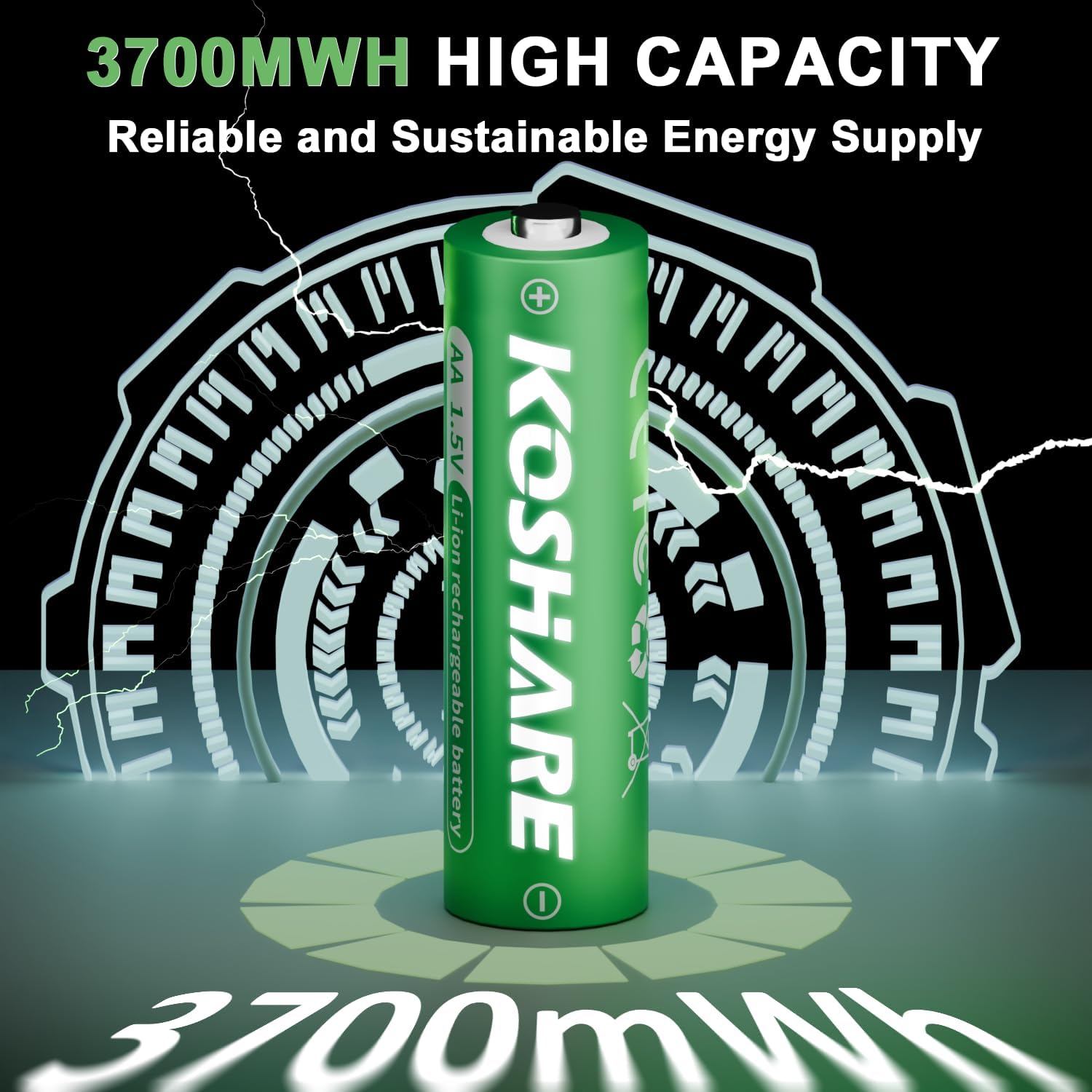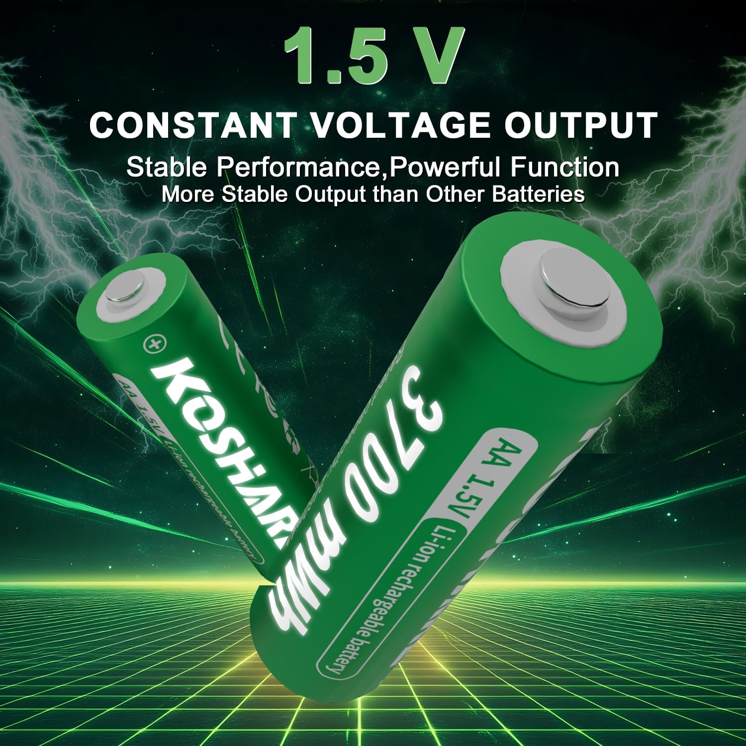【3700MWH Powerful Power, Long-lasting Endurance】1.5V rechargeable lithium battery is designed for high-power devices. The ultra-high capacity of 3700mWh provides long-lasting and stable power output. It is an ideal choice for devices such as game controllers, video doorbells, cameras, electric toys, smart home devices, microphones, etc.