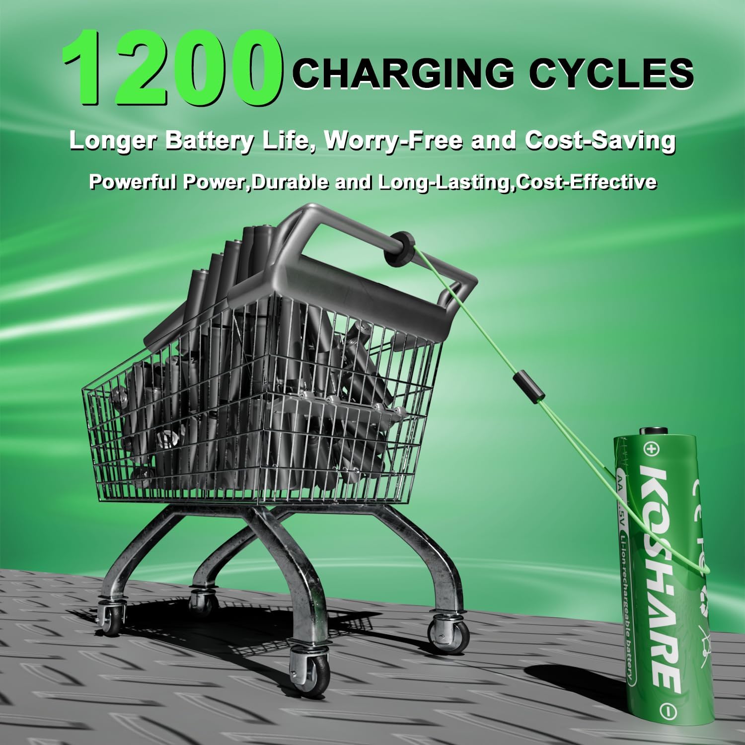 【1200 times of ultra-long life, economical and environmentally friendly】Rechargeable lithium battery AA can be recharged 1200 times, no memory effect, low self-discharge rate, longer service life, more economical and environmentally friendly.