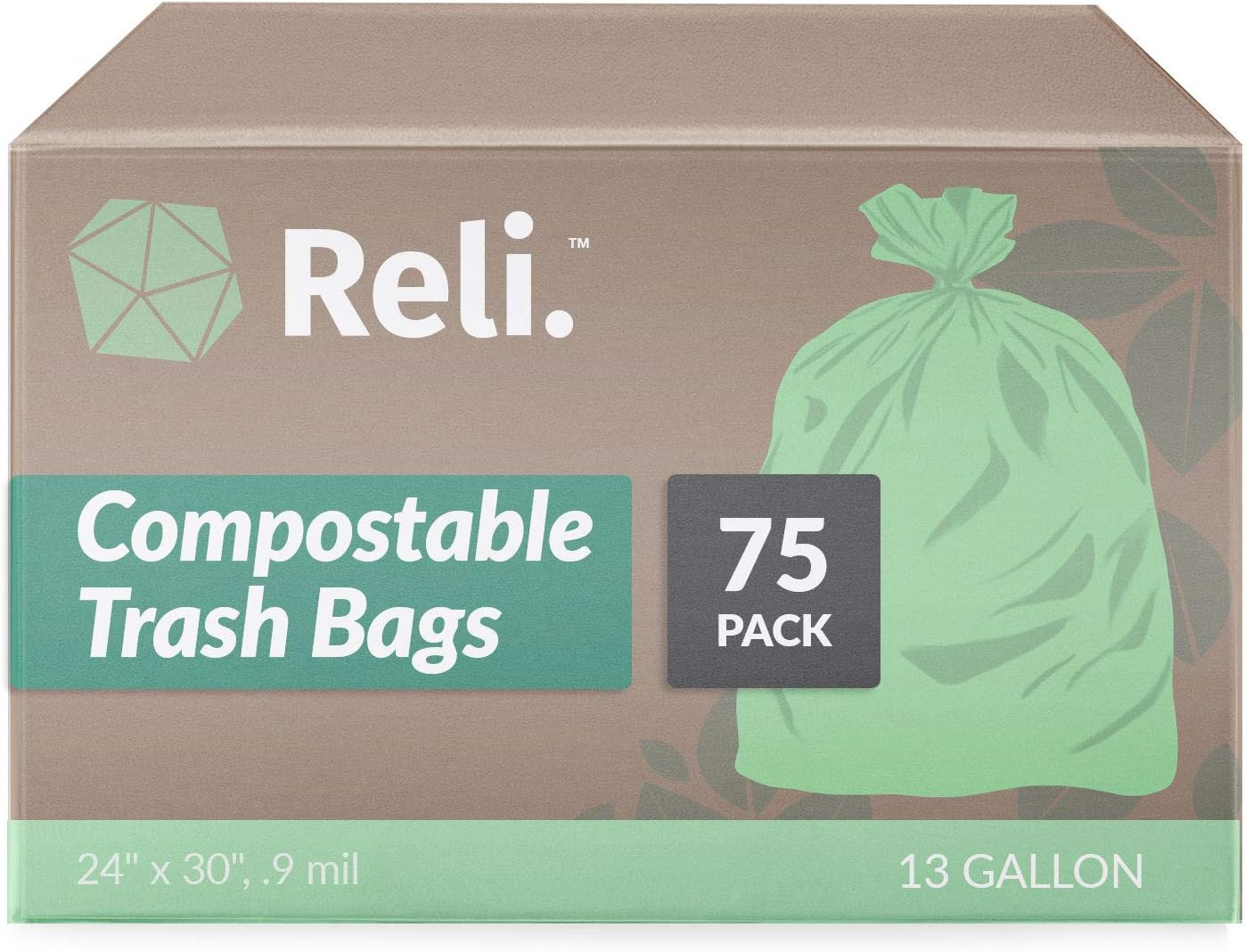 Reli. Compostable 13 Gallon Trash Bags | 75 Count | ASTM D6400 | Green | Eco-Friendly | For Compost