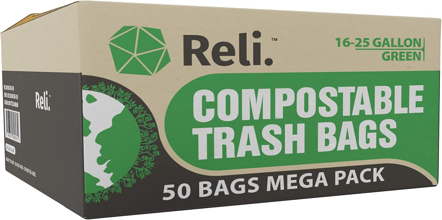 Reli. Compostable 16-25 Gallon Trash Bags | 50 Count | ASTM D6400 | Green | Eco-Friendly | For Compost