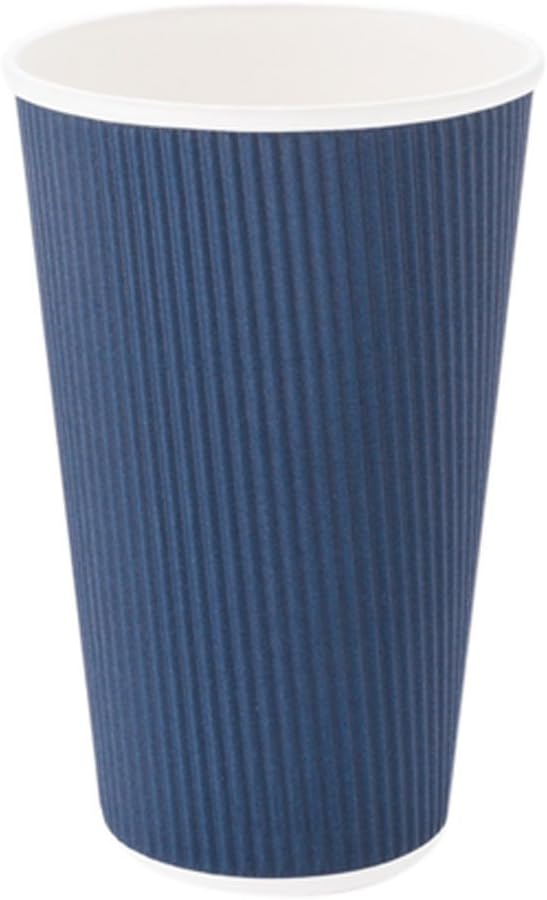Restaurantware 20 Ounce Ripple Insulated Coffee Cups, 250 Double Wall Corrugated Tumblers, Sustainable Midnight Blue Paper Design, Ribbed Surface, Secure Grip, Matching Lids Sold Separately