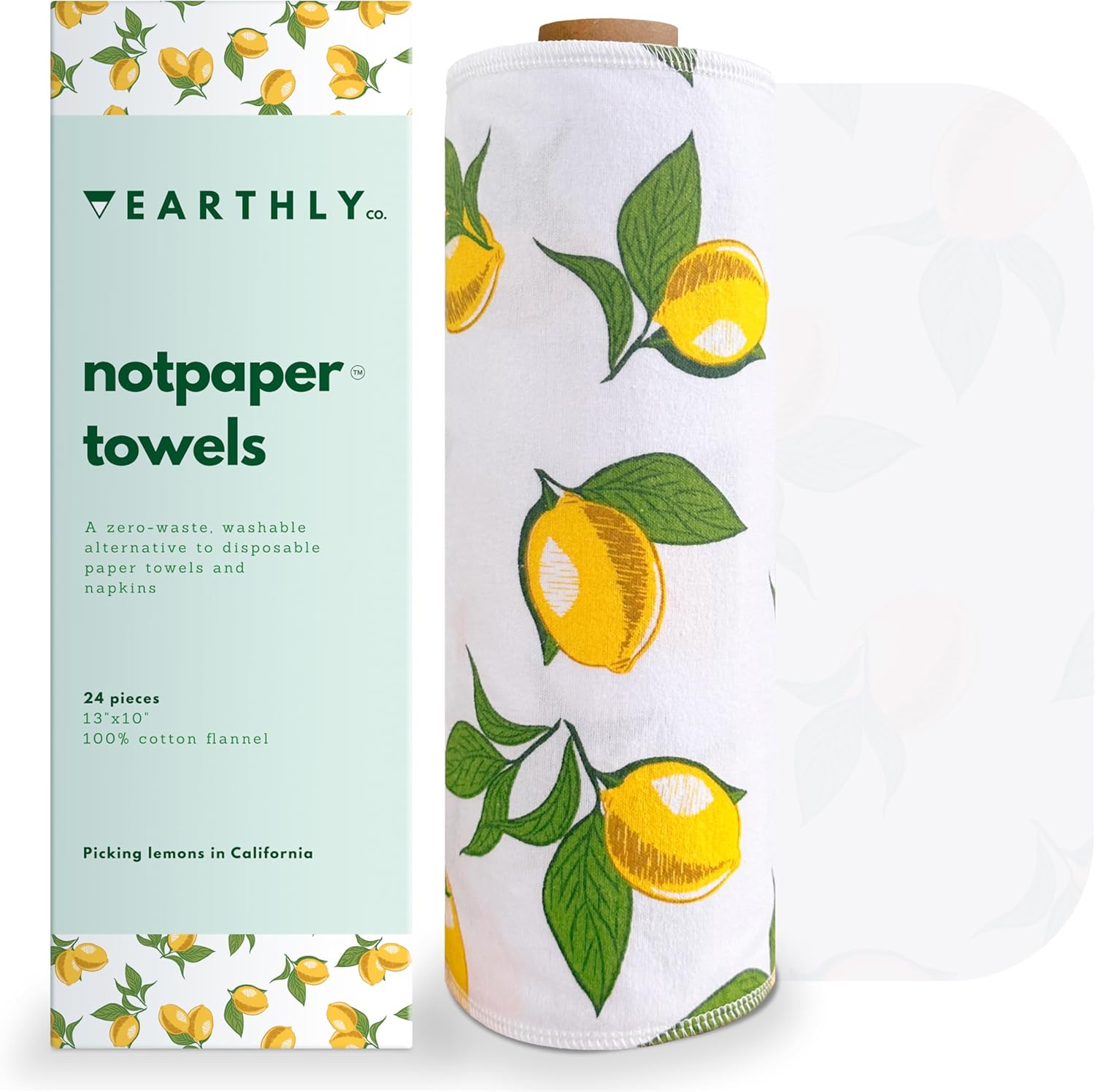 Reusable Paper Towels – 24 Pack – Roll of Washable Cotton Cloth Paper Towels – Paperless Reusable Napkins Cloth Washable – Absorbent + Long Lasting – Zero Waste Products – (Lemon)