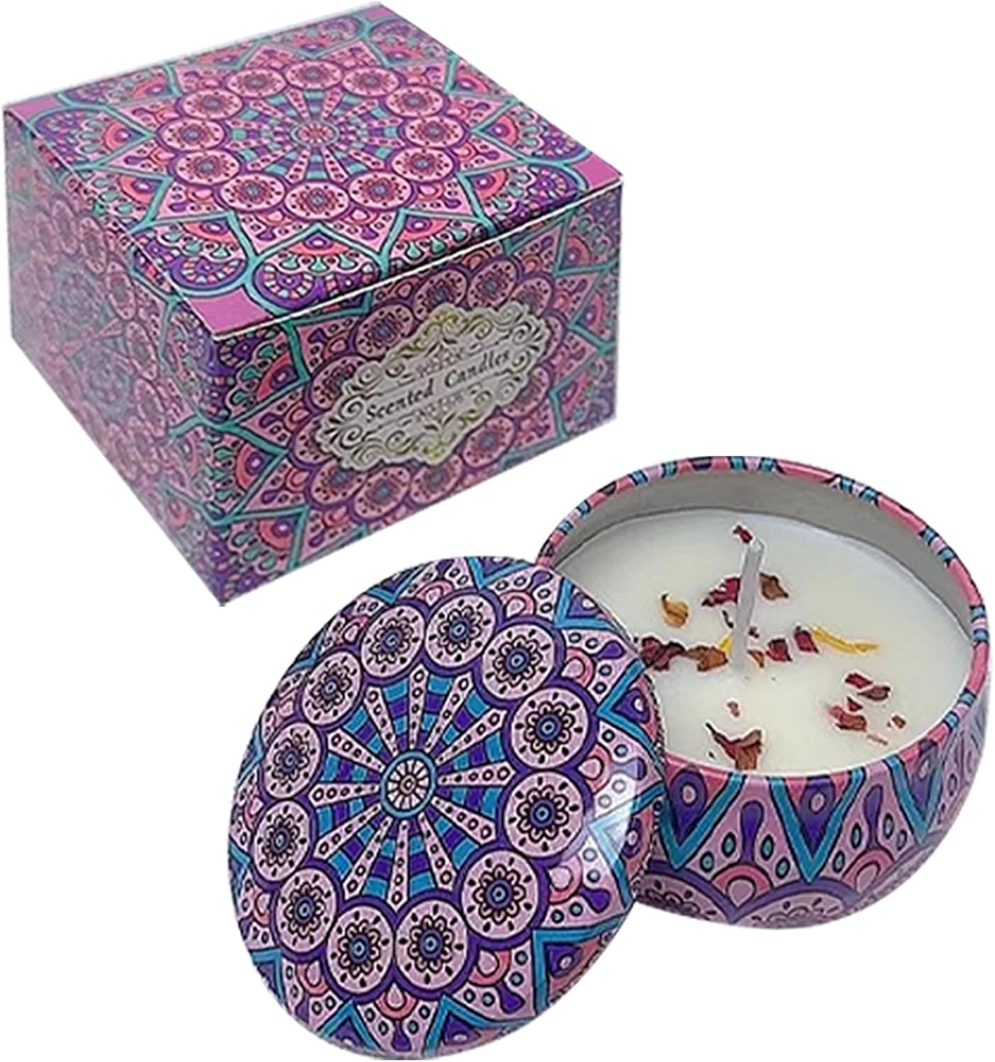 [PORTABLE CANNED CANDLES]: Our travel tin candles not only offer beautiful designs but are also lightweight and easy to carry. Whether you want to create a cozy atmosphere at home or bring them along for a special event, these portable candles are perfect for any occasion. These candles are perfect for creating a peaceful ambiance during meditation, yoga, or bath time.