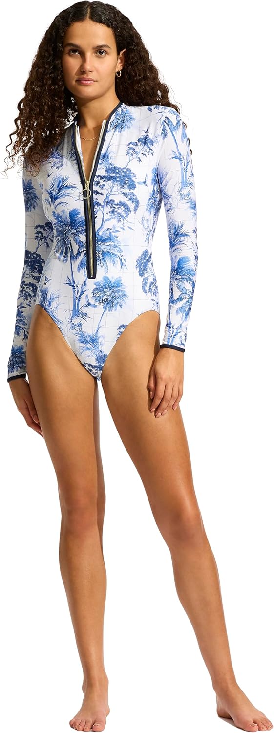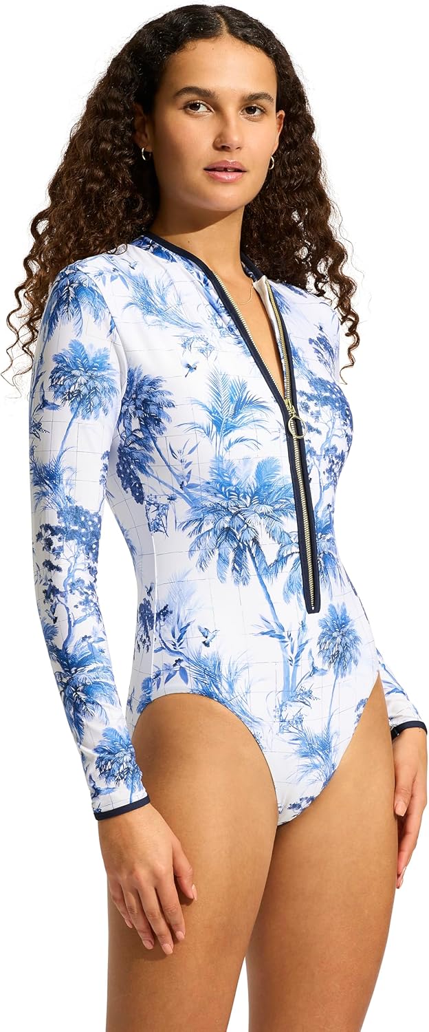 Seafolly Women’s Long Sleeve One Piece Surfsuit with Zip Front Swimsuit