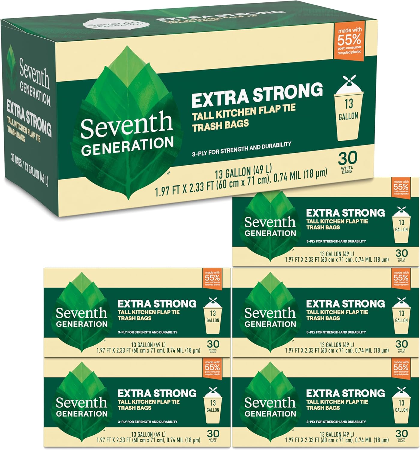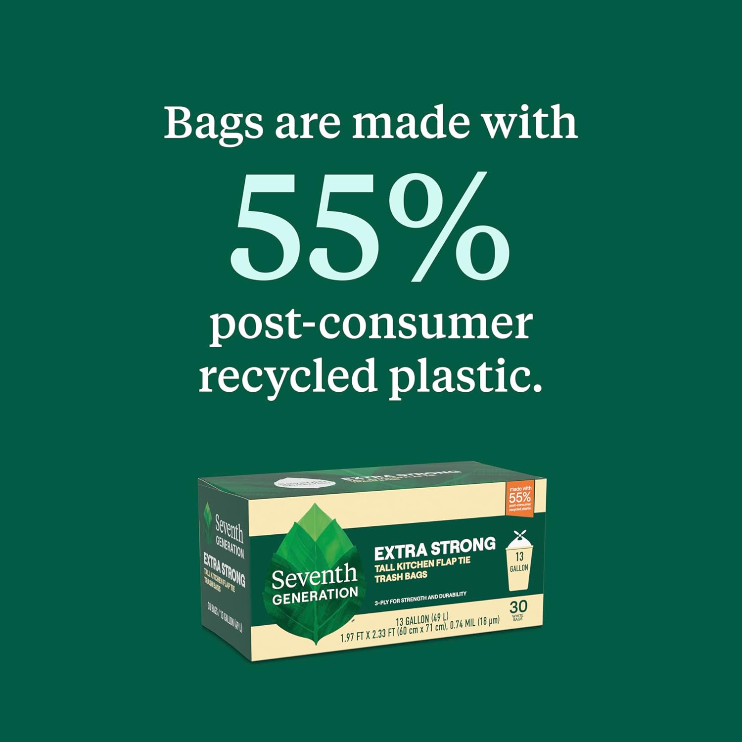 Seventh Generation Extra Strong Tall Kitchen Trash Bags 13 Gallon Pack of 6 30 count