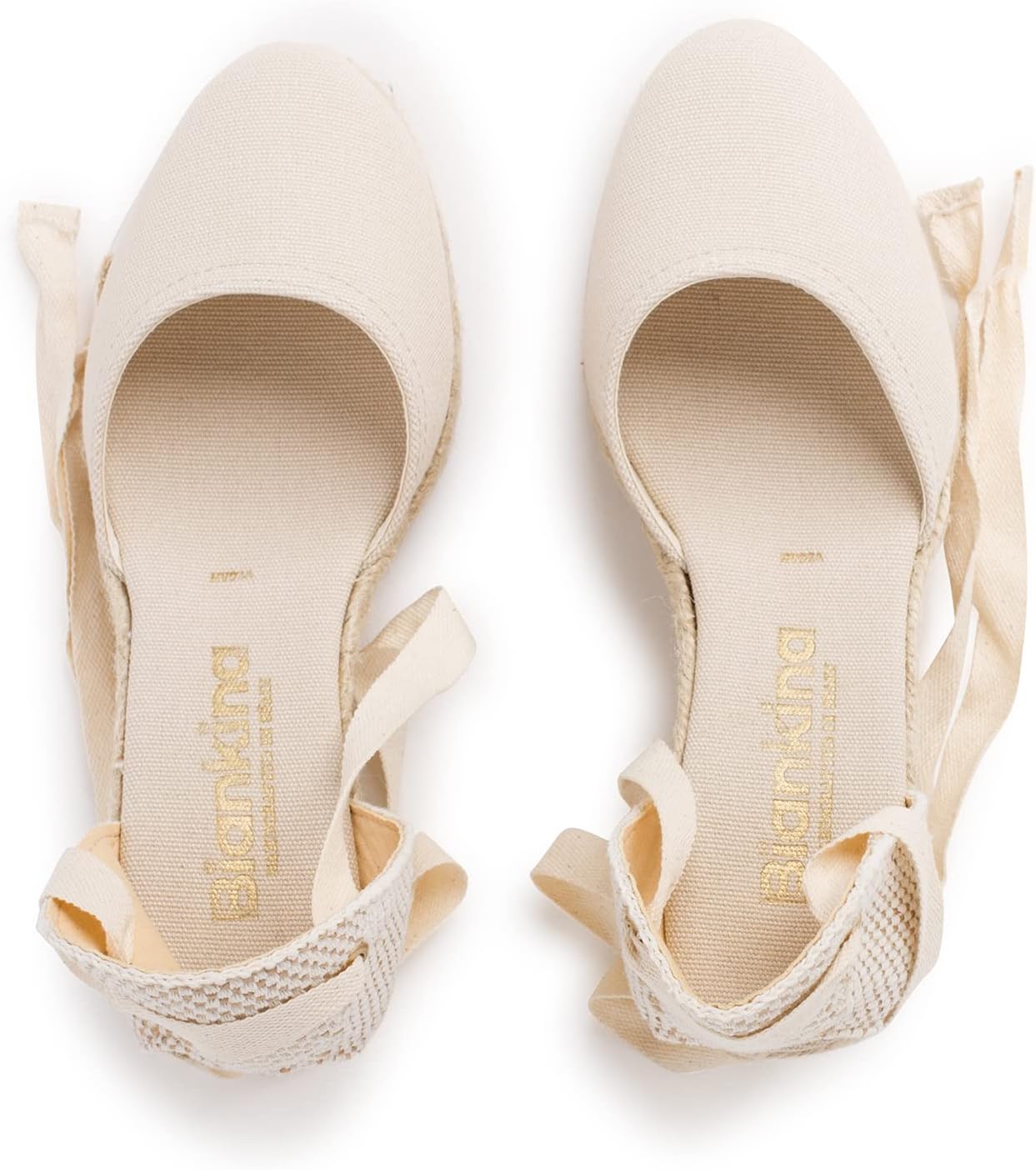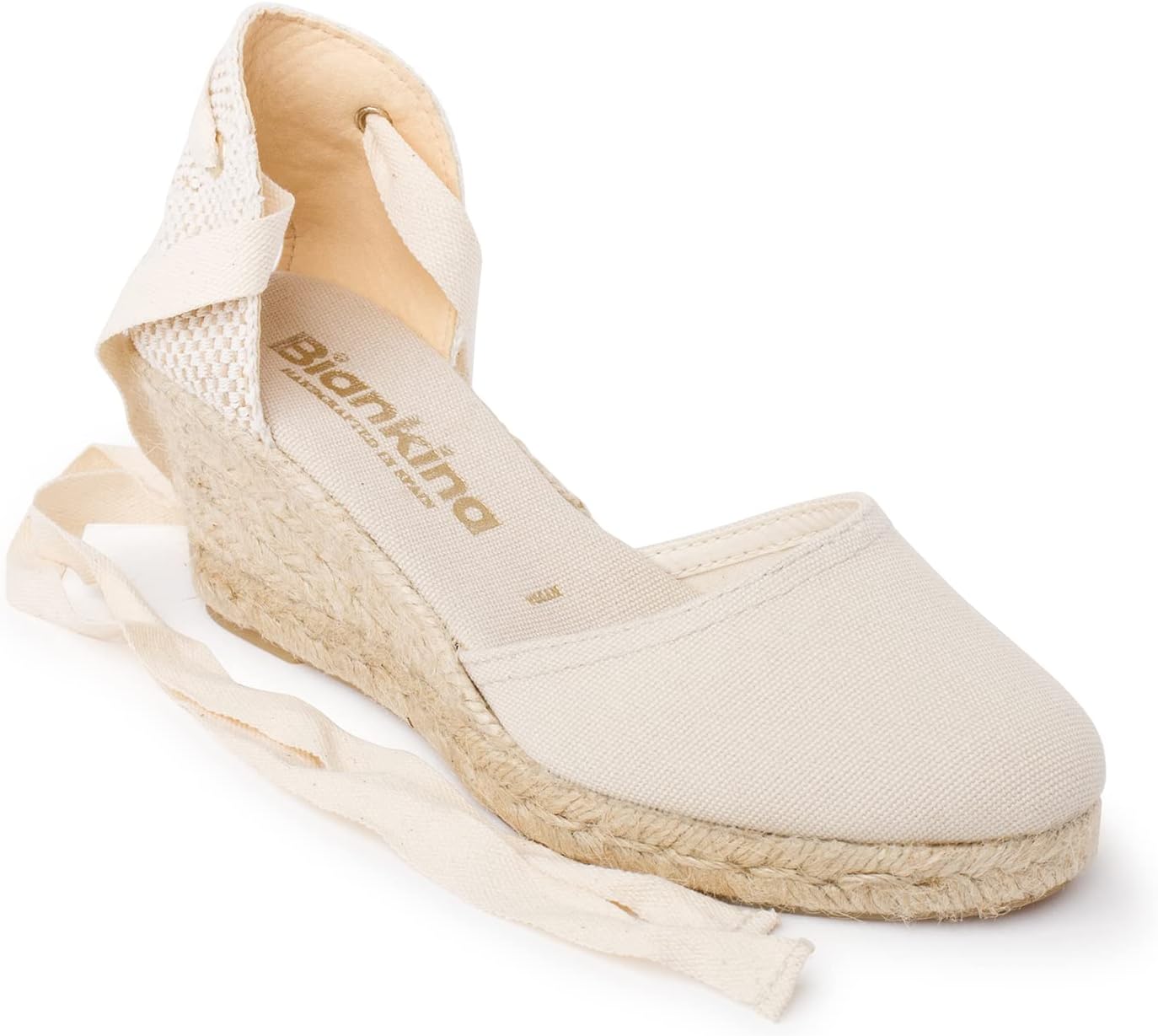 Sevilla Authentic Spanish Espadrille Wedge Sandals for Women – Sustainable, Eco Friendly, Vegan Shoes. Classic Style, Organic Cotton Canvas Upper, Comfy Insole, Jute Midsole, Rubber Sole. Made in Spain