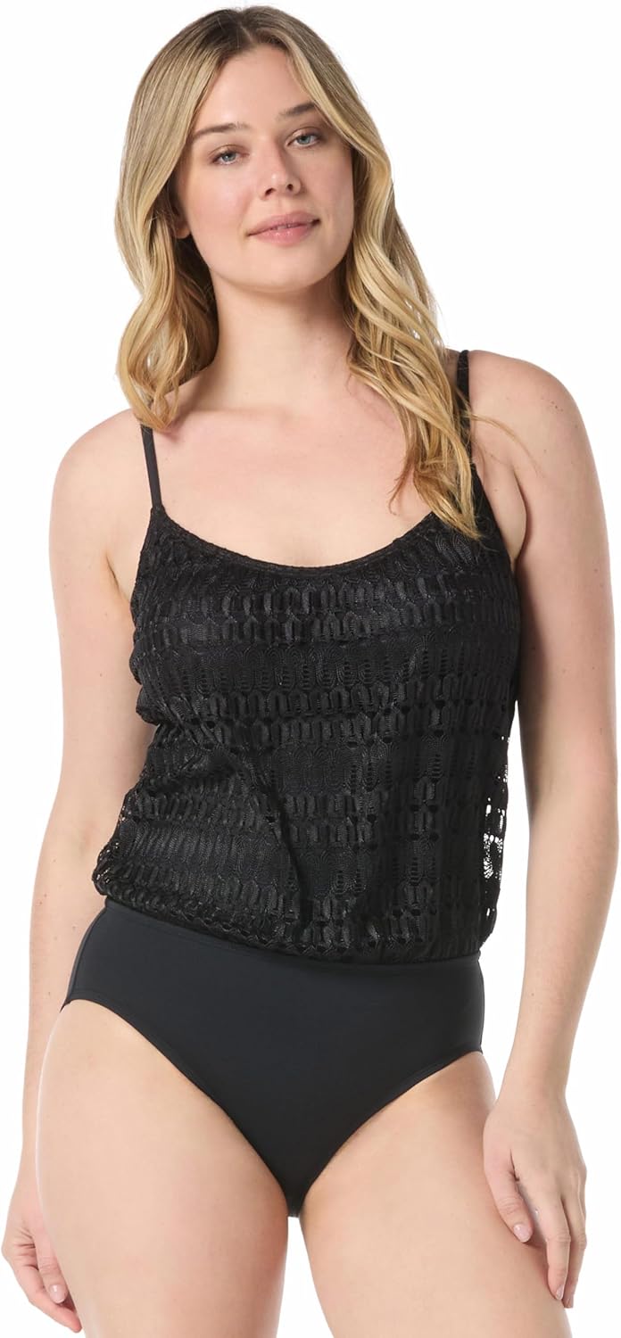 SHAPEMAKER One Piece Swimsuit with Blouson Modest Top, Curve Smoothing Features, Removable Soft Cups