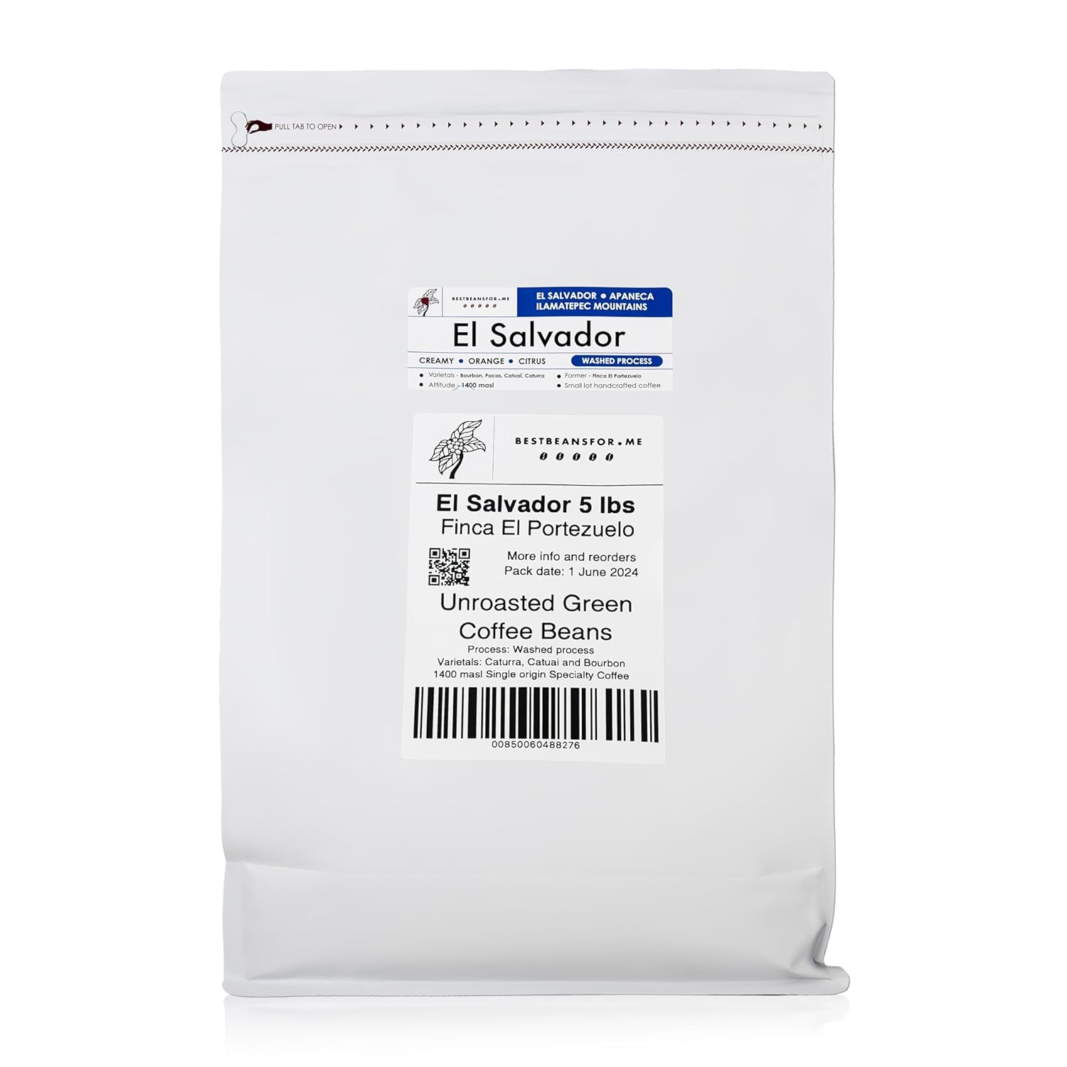 Single Origin Unroasted Green Coffee Beans, From El Salvador, Specialty Grade, Finca Portezuel, Bourbon and Caturra Varietals (5 lbs, El Salvador Honey)