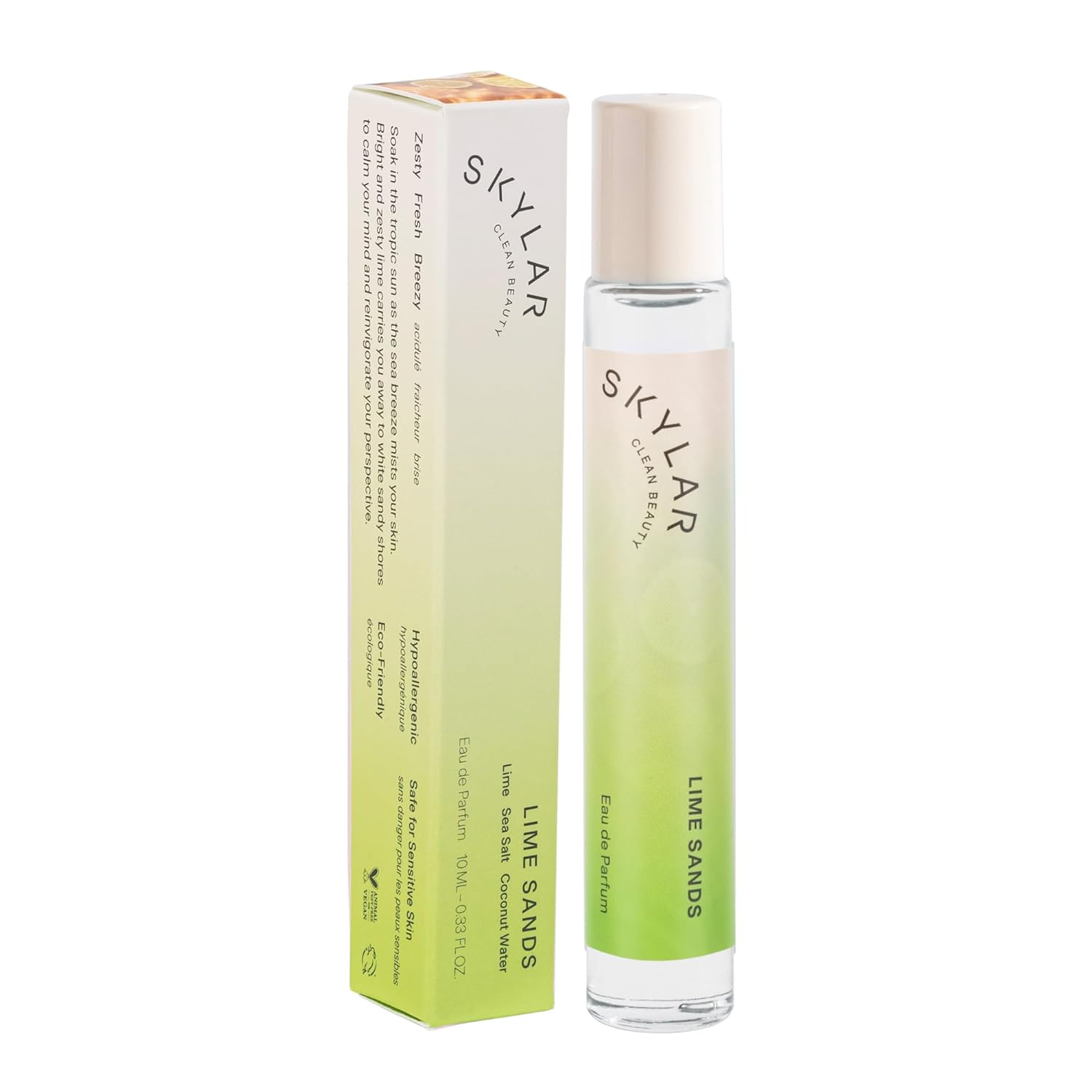 Skylar Lime Sands Eau de Parfum – Hypoallergenic & Clean Perfume Women & Men, Vegan & Safe for Sensitive Skin – Woody Citrus Perfume with Notes of Lime, Sea Salt & Coconut Water – (10mL /0.33 Fl oz)