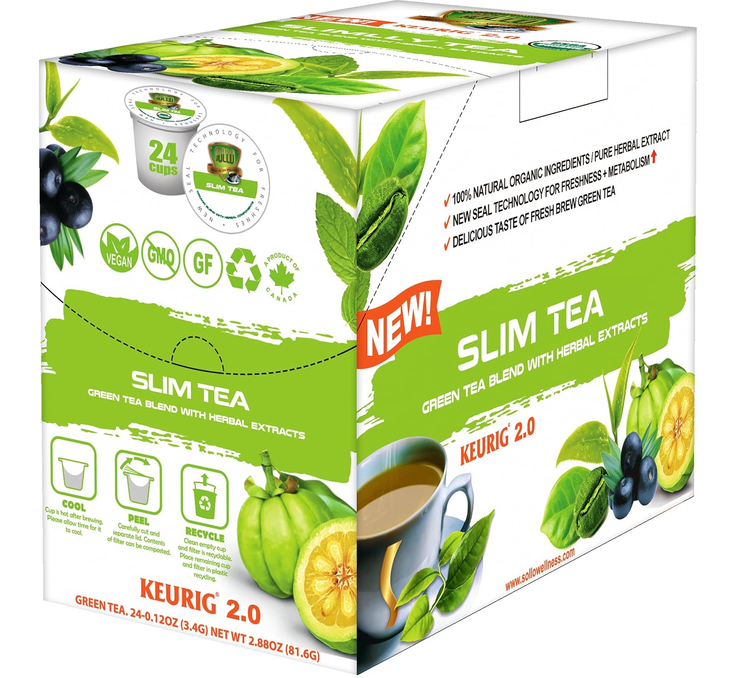 SOLLO Slim Tea K-Cup, Diet Support, Weight Loss with Garcinia & Green Coffee Extract, Single Serve Pods, Compatible With 2.0 K-Cup Keurig Brewers, 24 Ct
