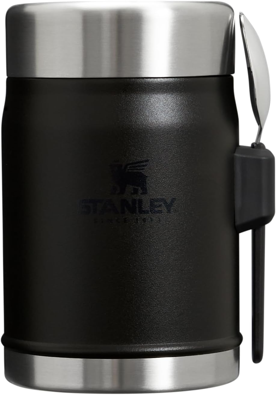 Stanley Classic Food Jar and Spork 14 oz | Vacuum Insulated Thermos Food Container | Wide Mouth Screw On Lid | Packable for Travel | Stainless Steel with Leakproof Lid | BPA-Free | Black 2.0