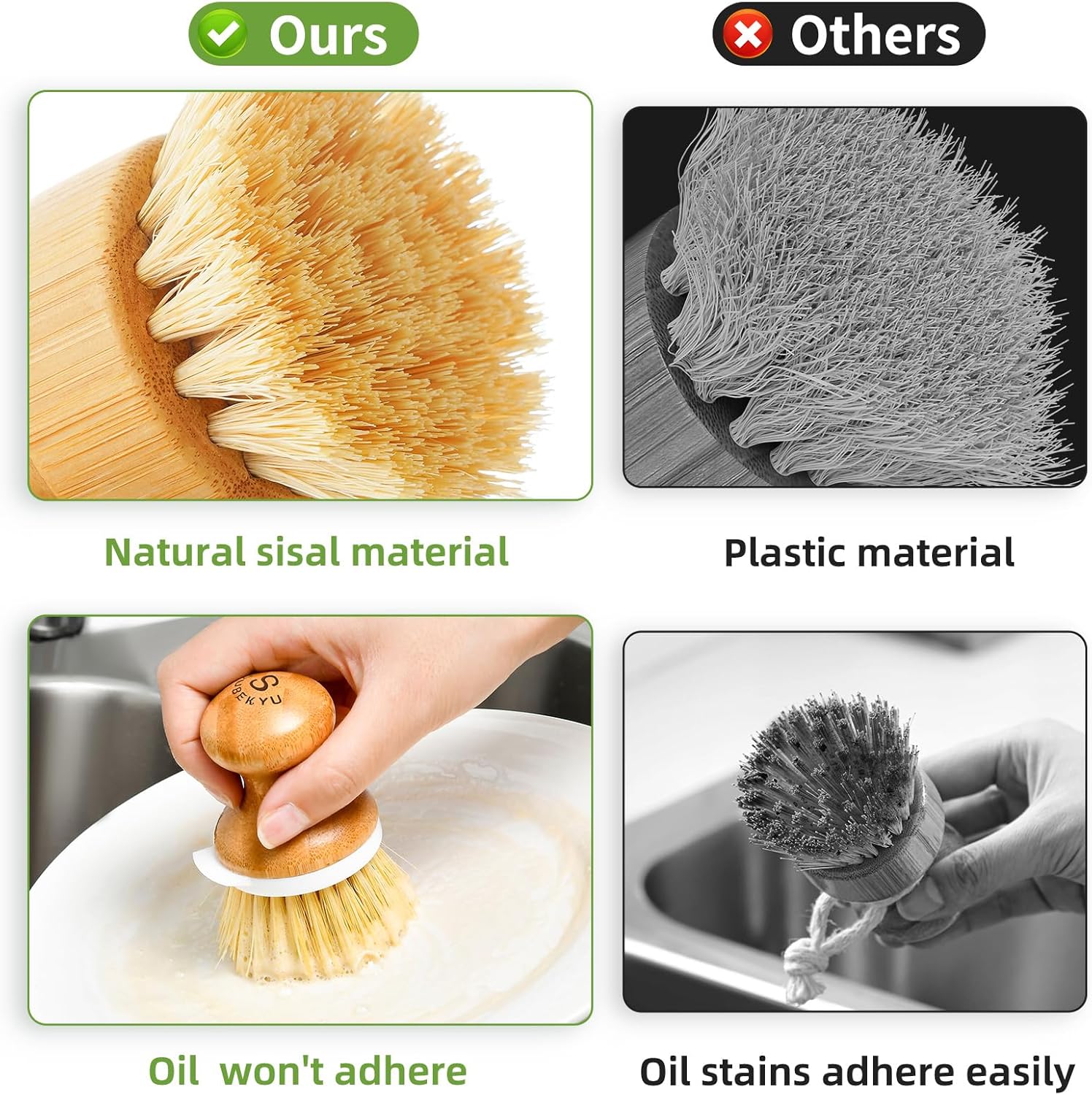 【Cleaing dishes and pans】: Sisal brush with ceramic disc, perfect for washing dishes, cast iron pans, and other stubborn stains.