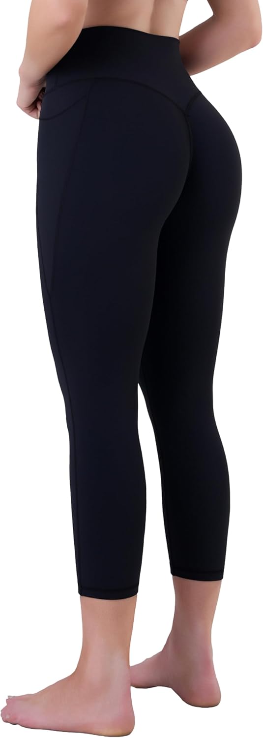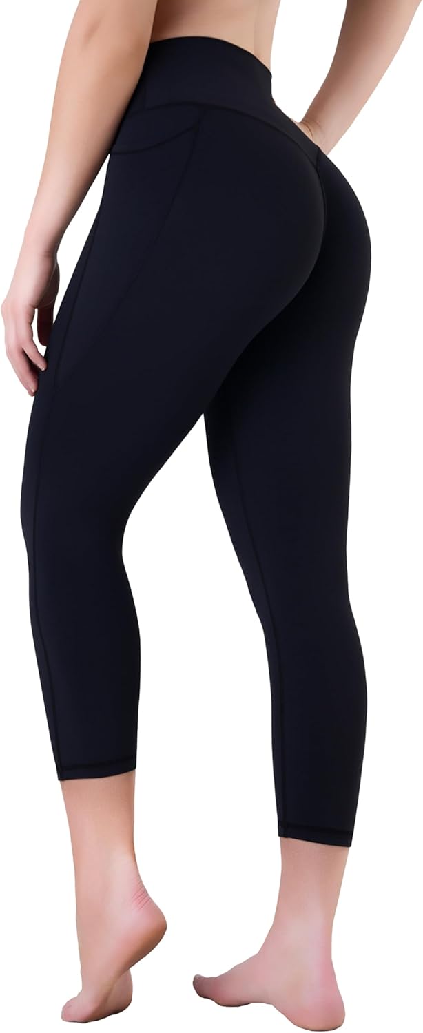 Sustainable Butt Lifting Capri Leggings with Pockets for Women, High Waisted No Front Seam Tummy Control Workout Yoga Pants
