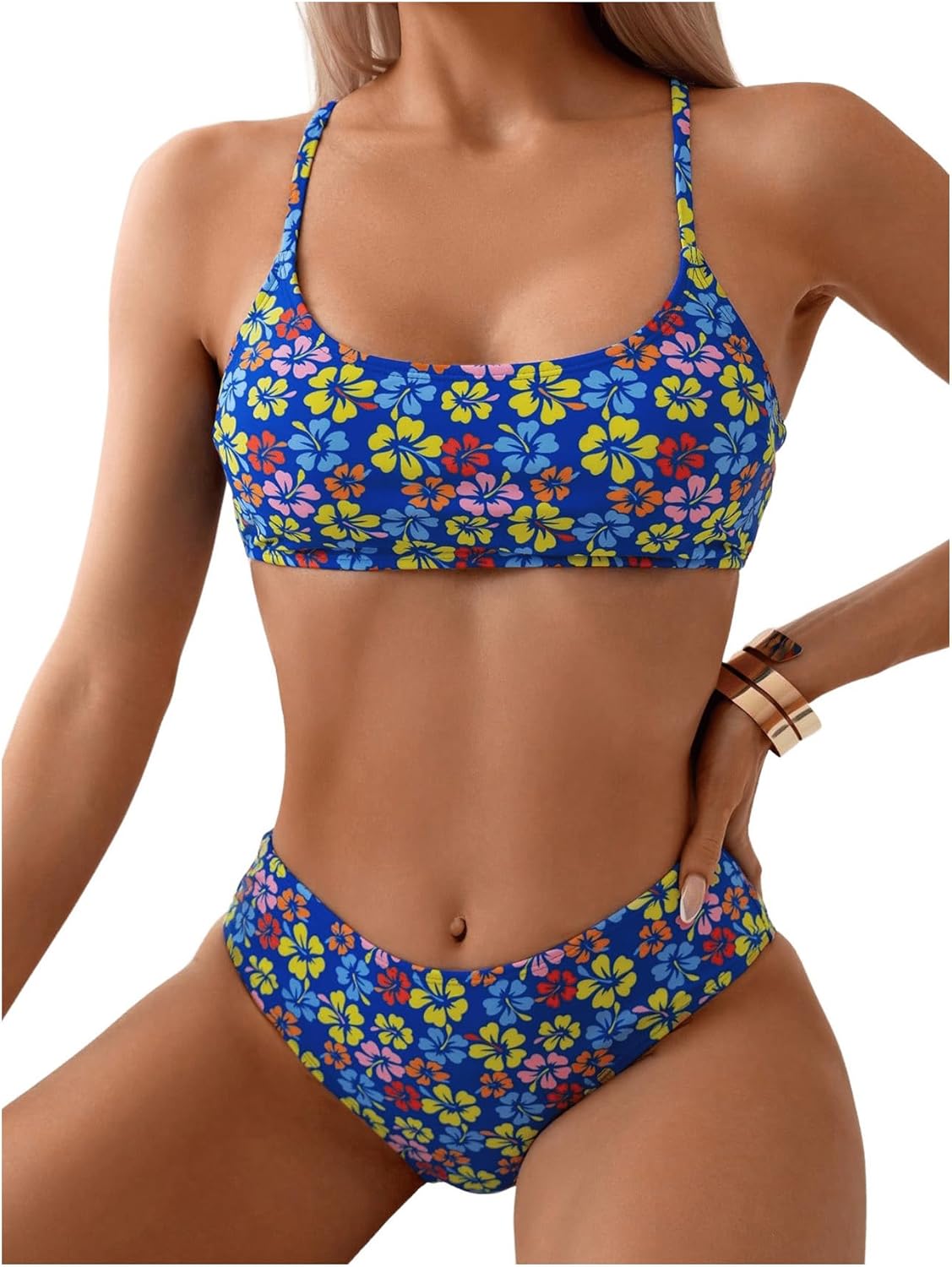 SweatyRocks Women’s Floral Print Bikini Set High Cut Boho Swimsuit Two Piece Bathing Suit
