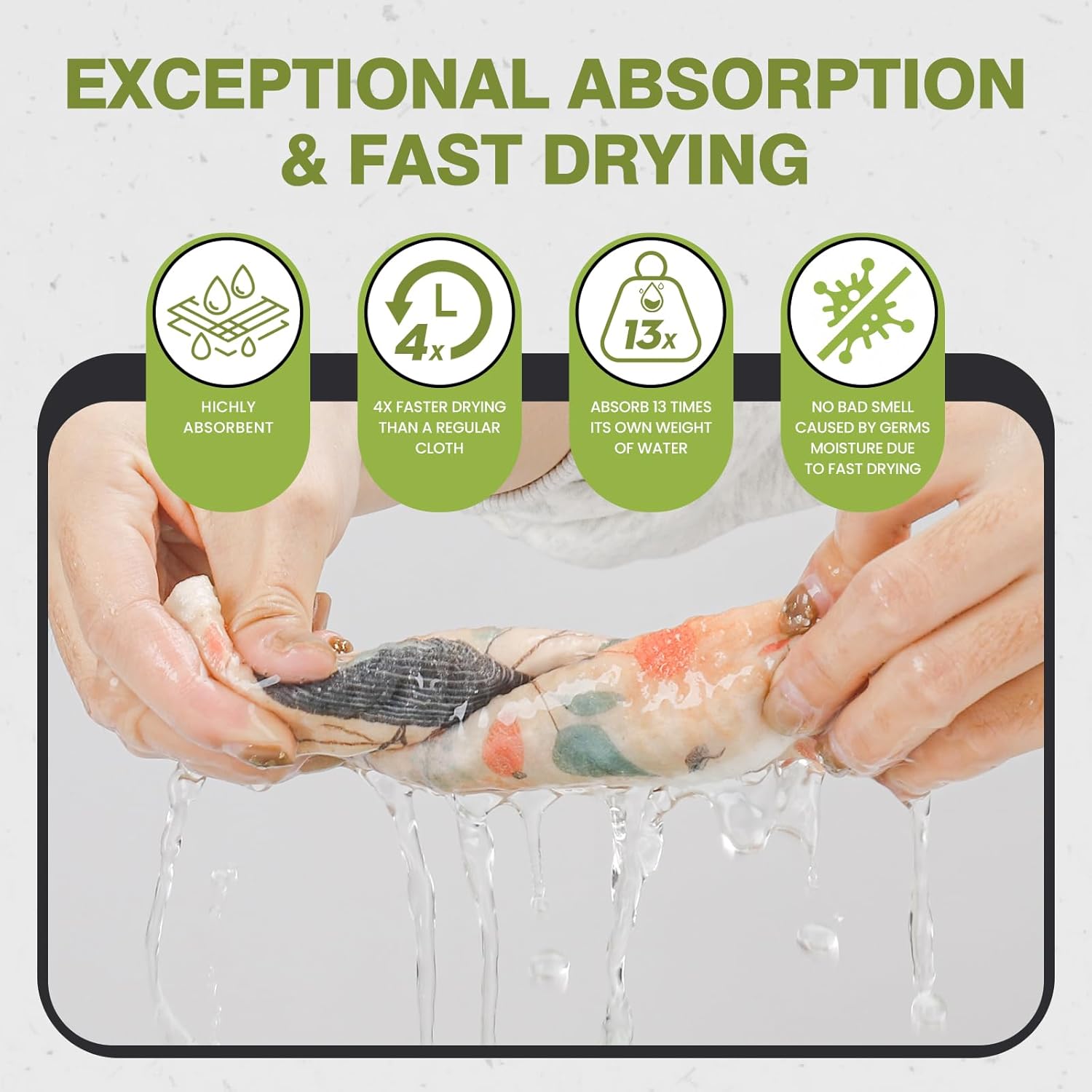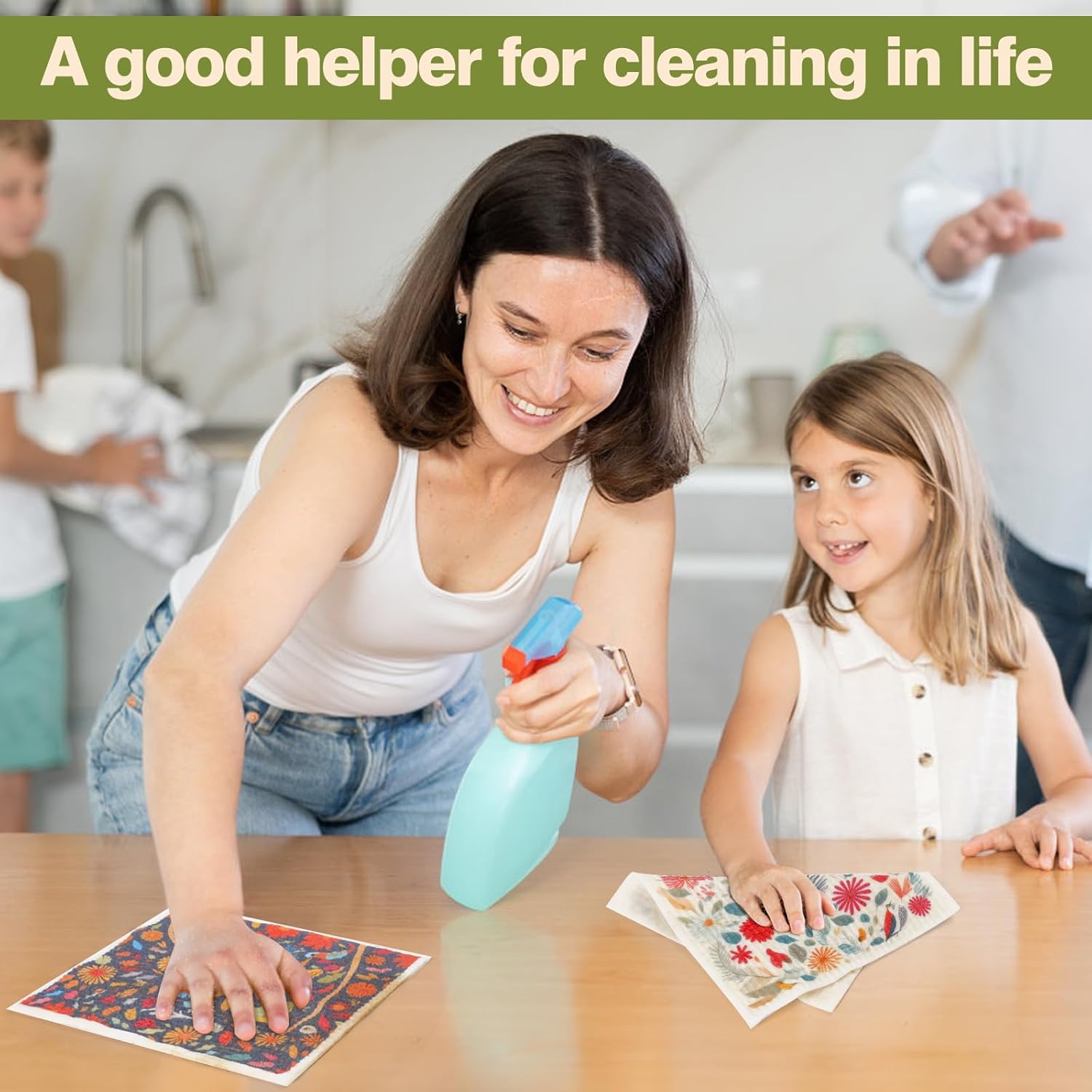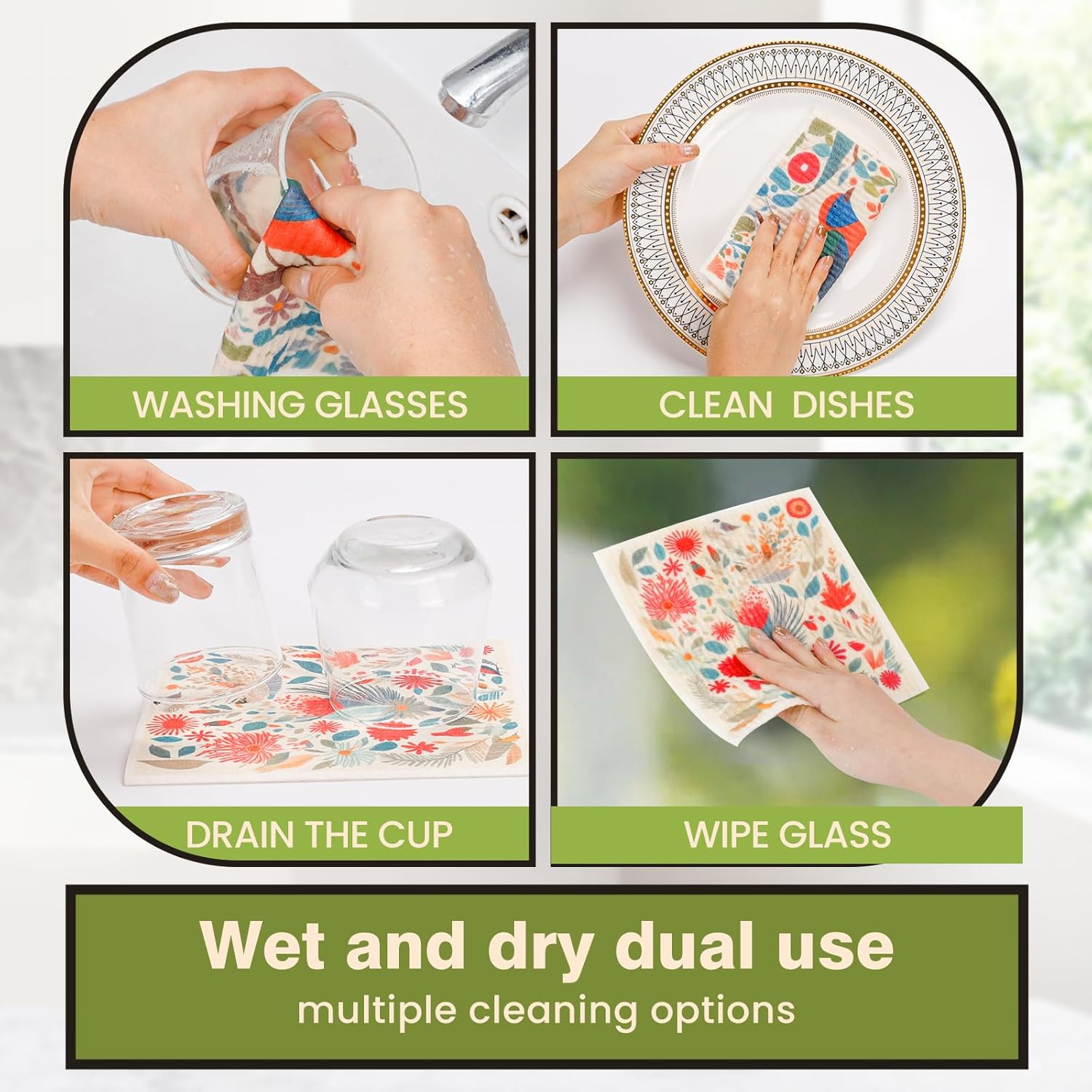 Durability and Exceptional Absorption: Designed for toughness and longevity, our reusable paper towels can withstand rigorous use while maintaining their absorbent qualities. 1 Swedish dishcloth replaces 15-17 paper towel rolls. They efficiently soak up spills and messes, leaving your kitchen surfaces dry and clean.