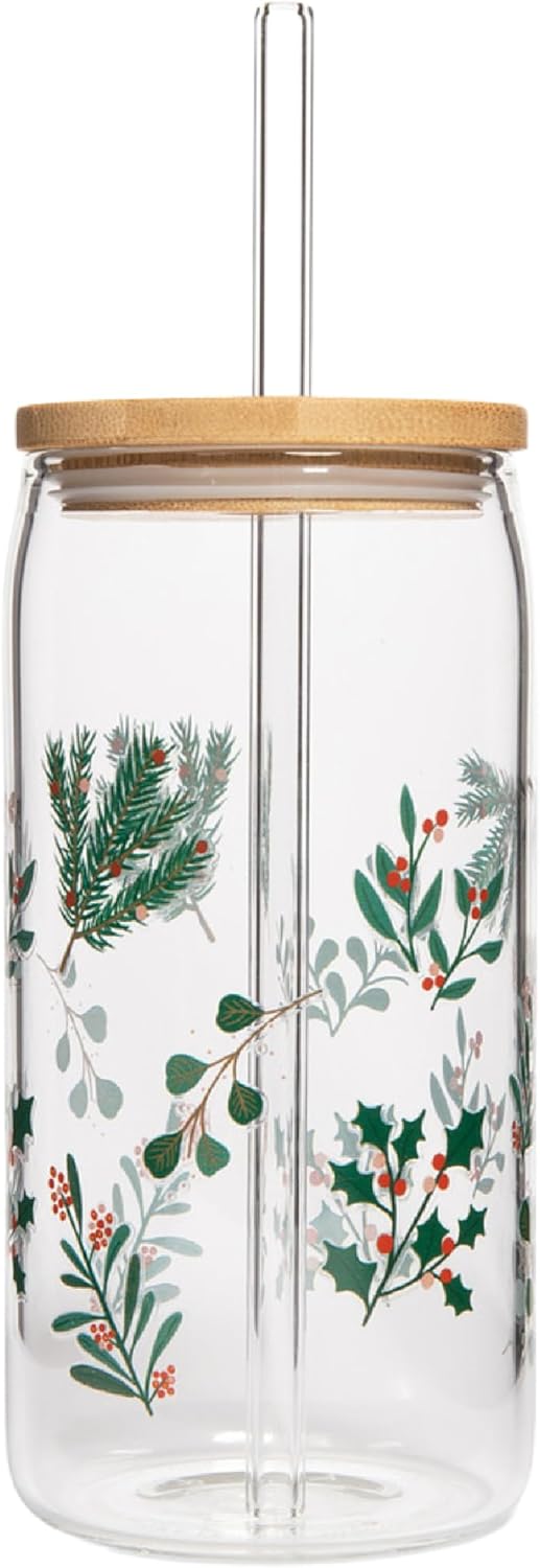 COMFORTABLE SIZE & FIT – At 6″ x 2.625″ (8″ tall w/ straw), this can glass with bamboo lid and straw fits comfortably in your hand and holds just the right amount of your favorite festive drinks. A unique collectible, this glass captures the magic of Christmas with its Greenery design, adding a touch of holiday charm to gatherings and as a seasonal gift.