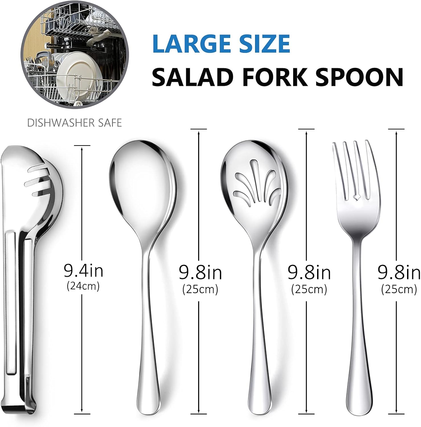 SET OF 24 SERVING SET: 6 metal Slotted Spoons in 9.8 inches, 6 metal serving spoons in 9.8 inches, 6 metal serving forks in 9.8 inches and 6 metal serving tong in 9.4 inches.