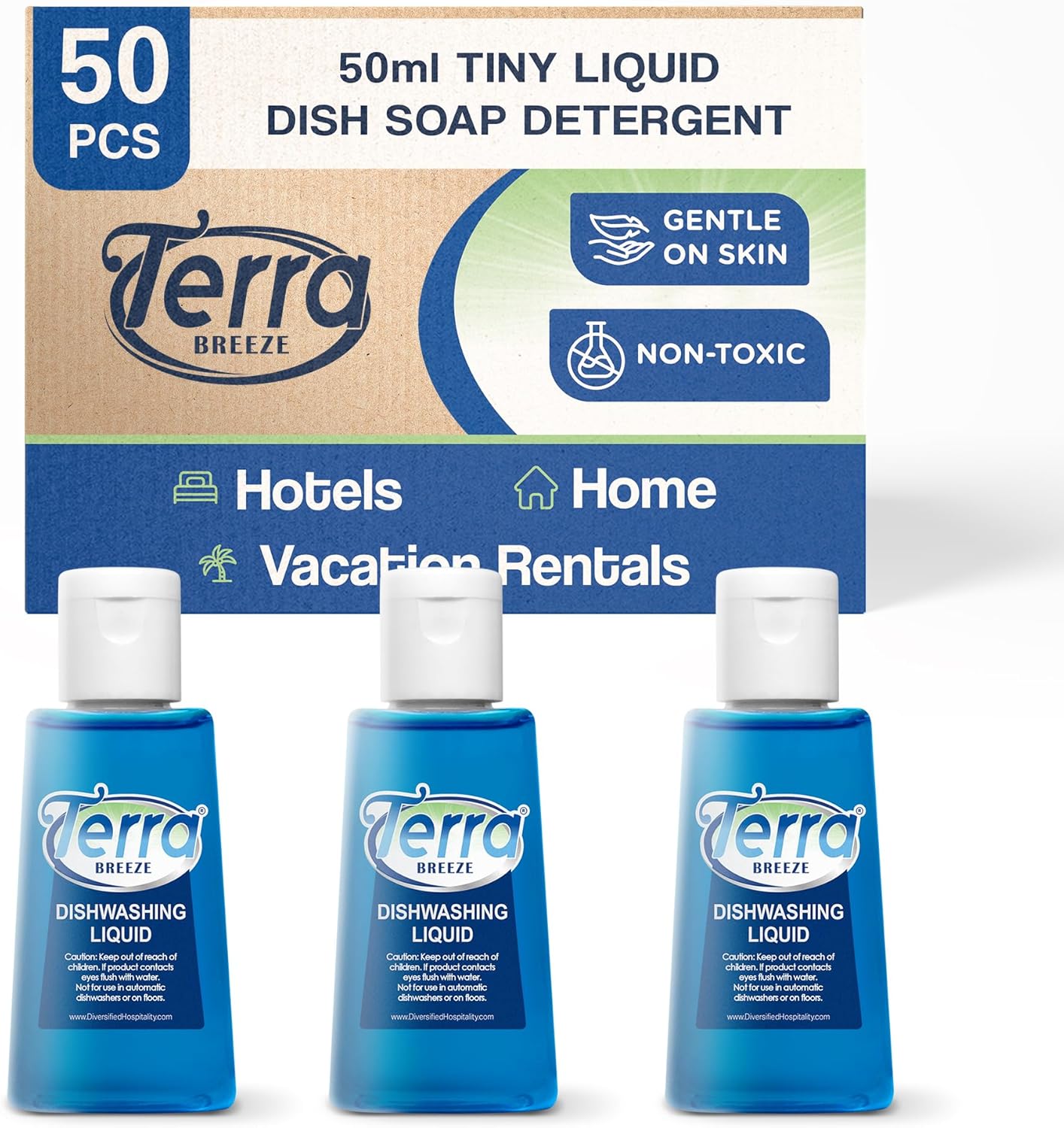 Terra Breeze Tiny Dish Soap Detergent | For Use in Vacation Rentals and Extended Stay Hotels | 1.6 oz (Case of 50)