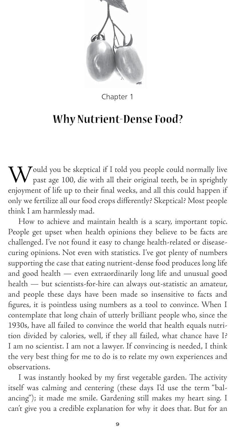 Vegetables, fruits, and grains are a major source of vital nutrients, but centuries of intensive agriculture have depleted our soils to historic lows. As a result, the broccoli you consume today may have less than half the vitamins and minerals that the equivalent serving would have contained a hundred years ago. This is a matter of serious concern, since poor nutrition has been linked to myriad health problems including cancer, heart disease, obesity, high blood pressure, and diabetes. For optimum health we must increase the nutrient density of our foods to the levels enjoyed by previous generations.