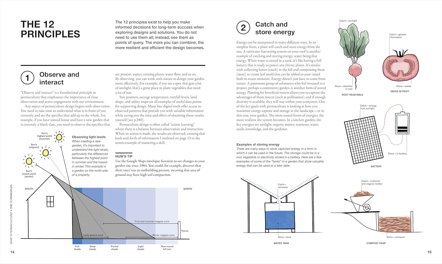 What to grow: a substantial and comprehensive reference of all the edible plants and flowers you can grow – when to sow, grow, and harvest.Includes perennials that produce every year, maximizing yield for effort as well as introducing new plants to your garden.A permaculture approach: streamline the way your garden operates with ideas on building resilience (for example, how to store water), using vertical space, generating healthy soil, and mixed “polyculture” planting.Aesthetics and environment: how to make your kitchen garden look good year-round by planting ornamental edibles and flowering crops that attract pollinators.Maximizing space: a chapter on spaces helps you grow in shade or a south-facing corner and use pots and climbing varieties up walls and fences to bolster beds and under-cover growing areas. A roadmap for the year ahead guides you through the key moments throughout the four seasons.