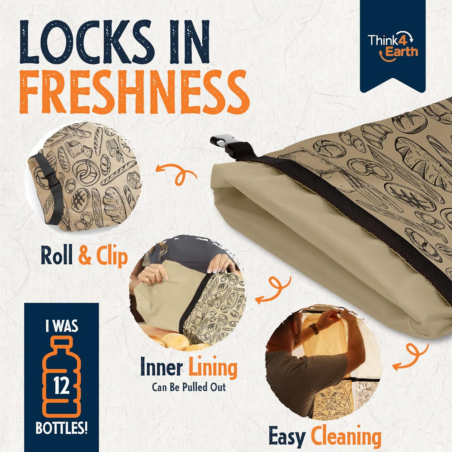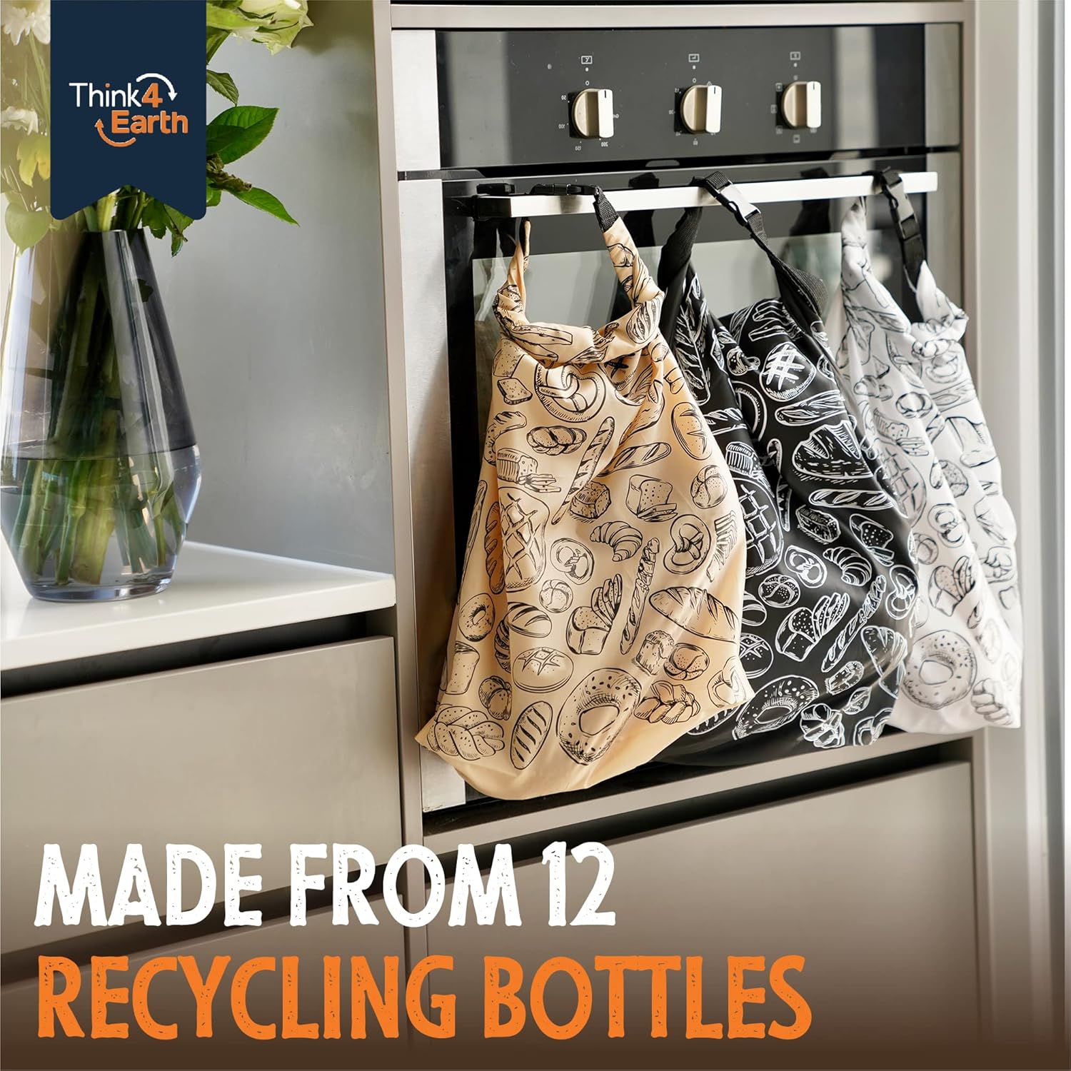 ECO-FRIENDLY & REUSABLE BREAD BAGS: Opt for our reusable bread bags made from recycled plastic bottles as a planet-conscious alternative to disposable plastics. Contribute to a greener future while keeping your homemade or professional bakery products fresh with Think4Earth’s sustainable food storage solutions. Crafted from 12 BPA-free, food-safe recycled plastic bottles, these vegan-friendly, 100% recyclable bags make a positive impact.
