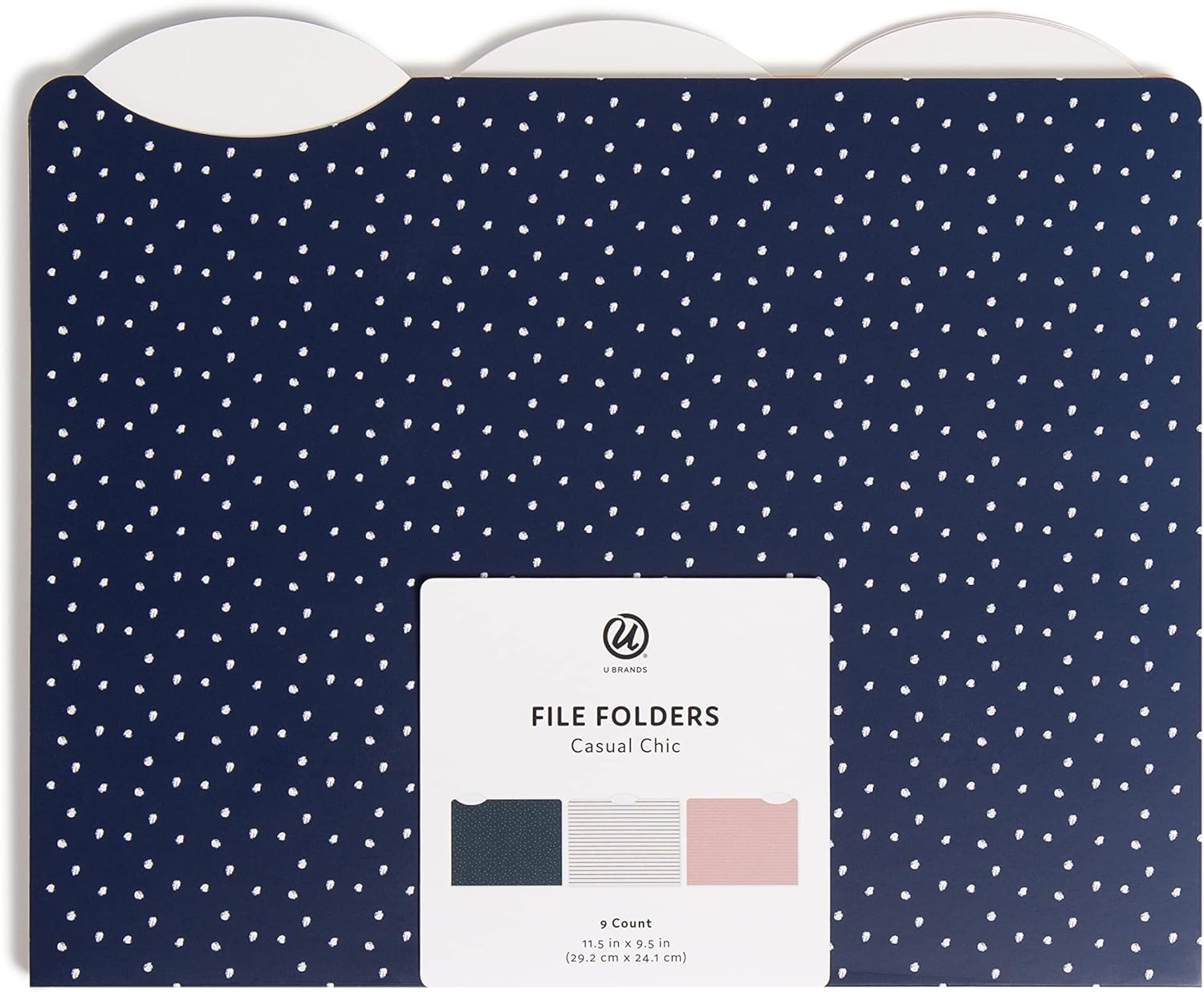 U Brands Casual Chic File Folders, Office Supplies, 1/3-Cut Tabs in Assorted Positions, Letter Size, Navy and Pink with White, 9 Count