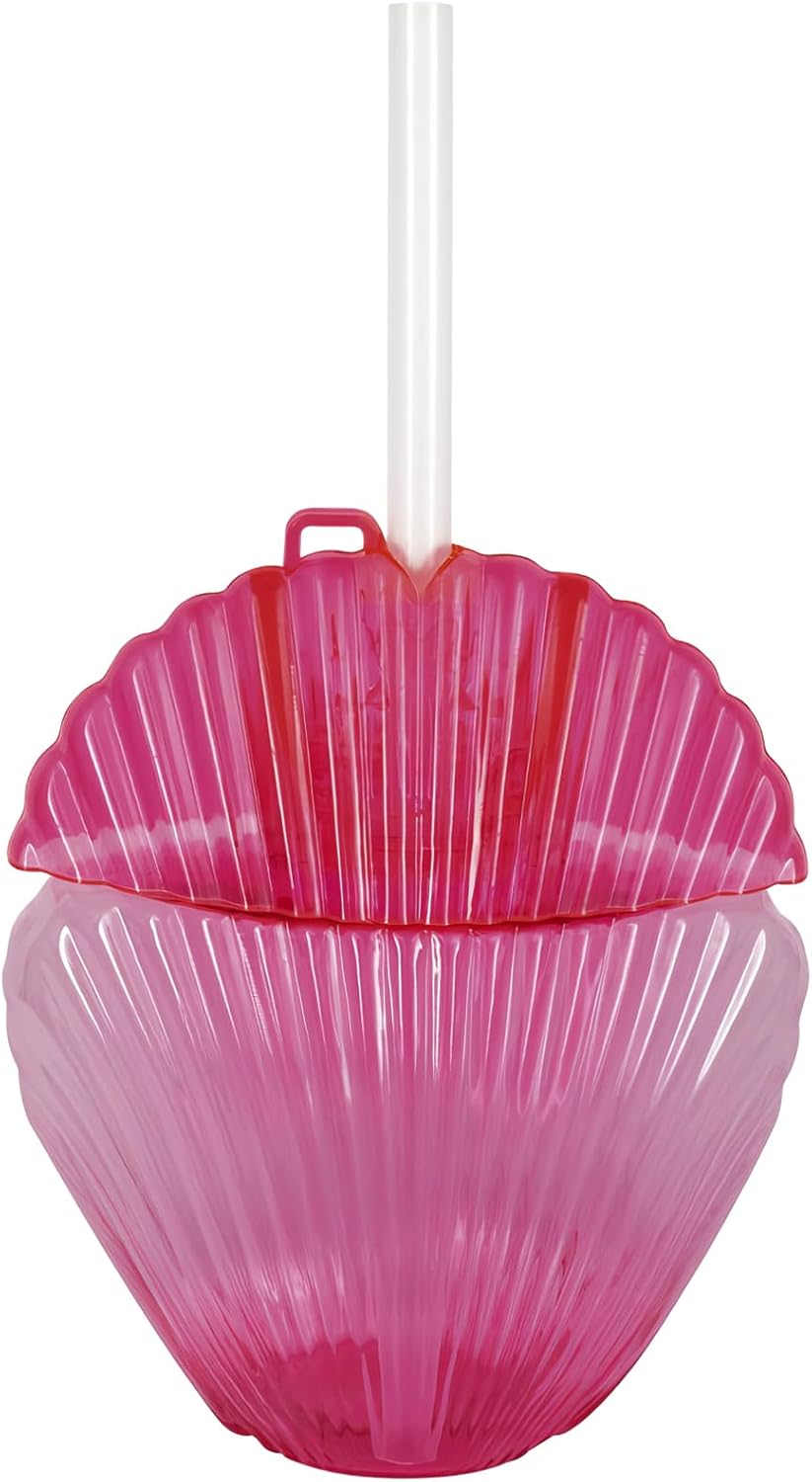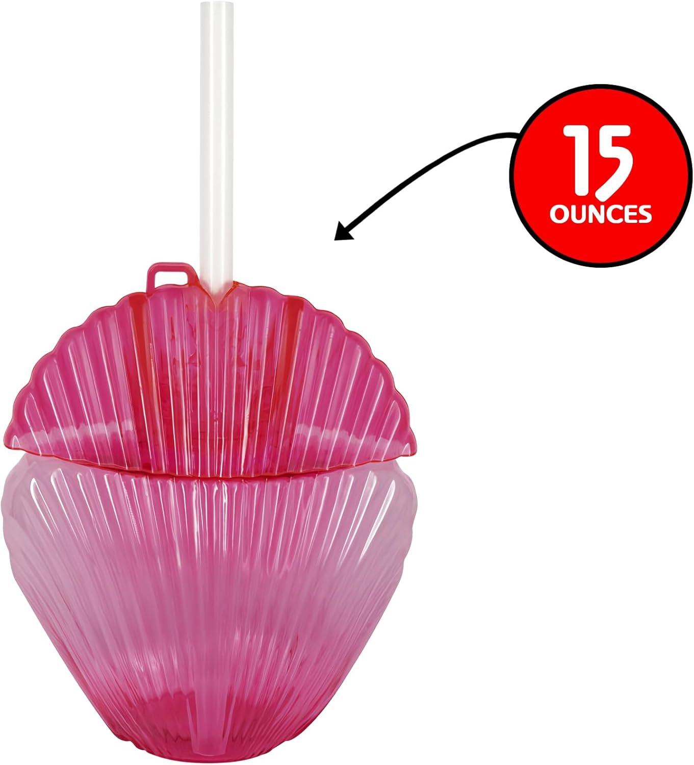 Unique Pink Translucent Seashell Shaped Plastic Cup with Straw, 15 oz. (1 Count) – Stylish & Reusable Drinkware, Ideal for Birthdays, Parties, Outdoor Gatherings, & More