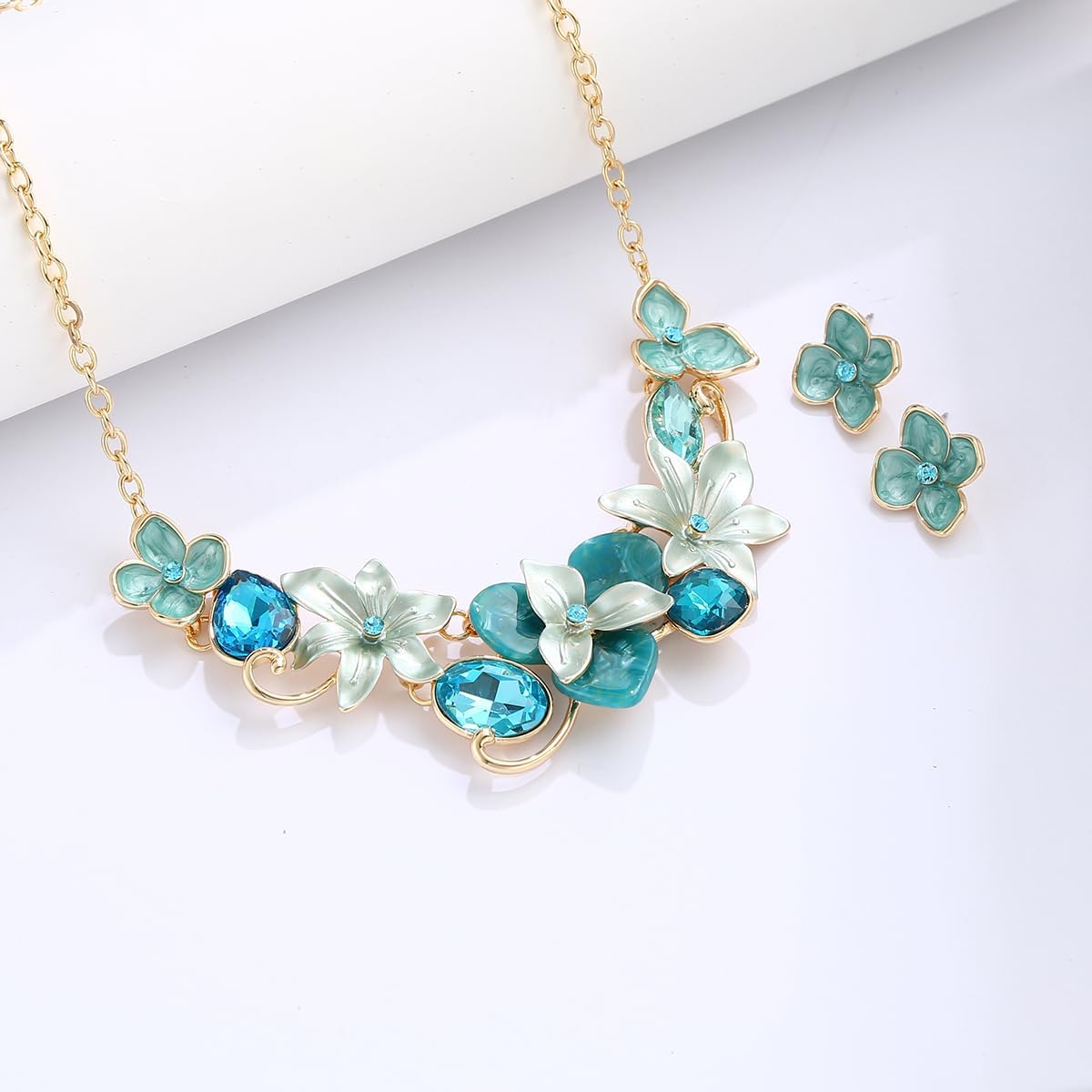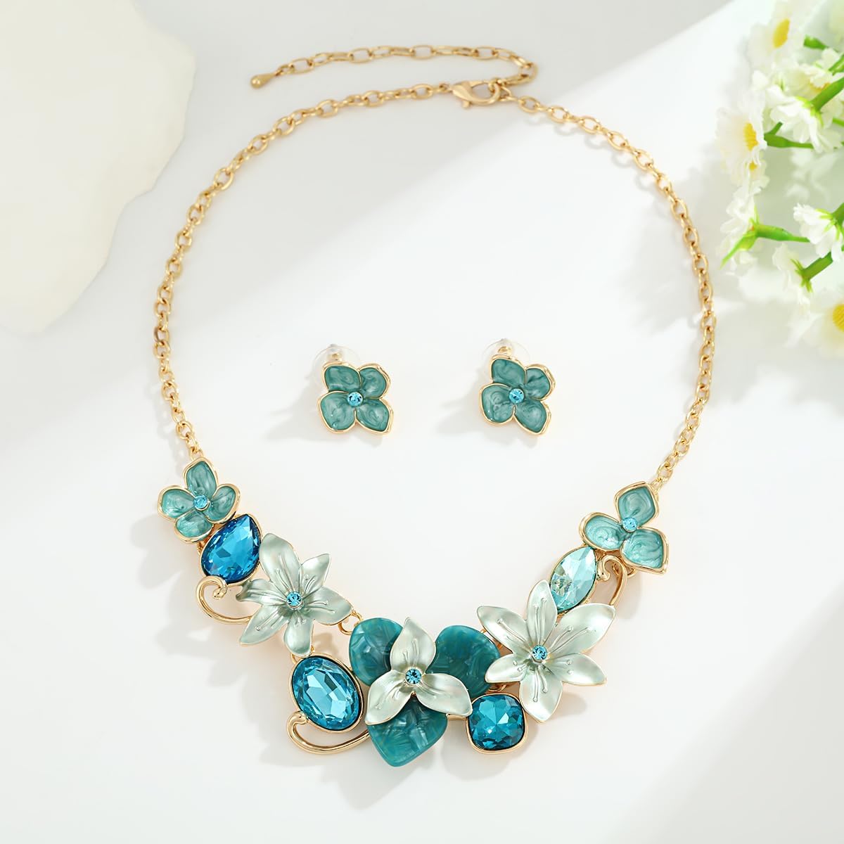 Vintage Chunky Statement Jewelry Set Retro Leaf Floral Geometric Bohemian Boho Bib Necklace Earring Set Fashion Costume Jewelry for Women Girls Wedding Party Prom Unique Gift