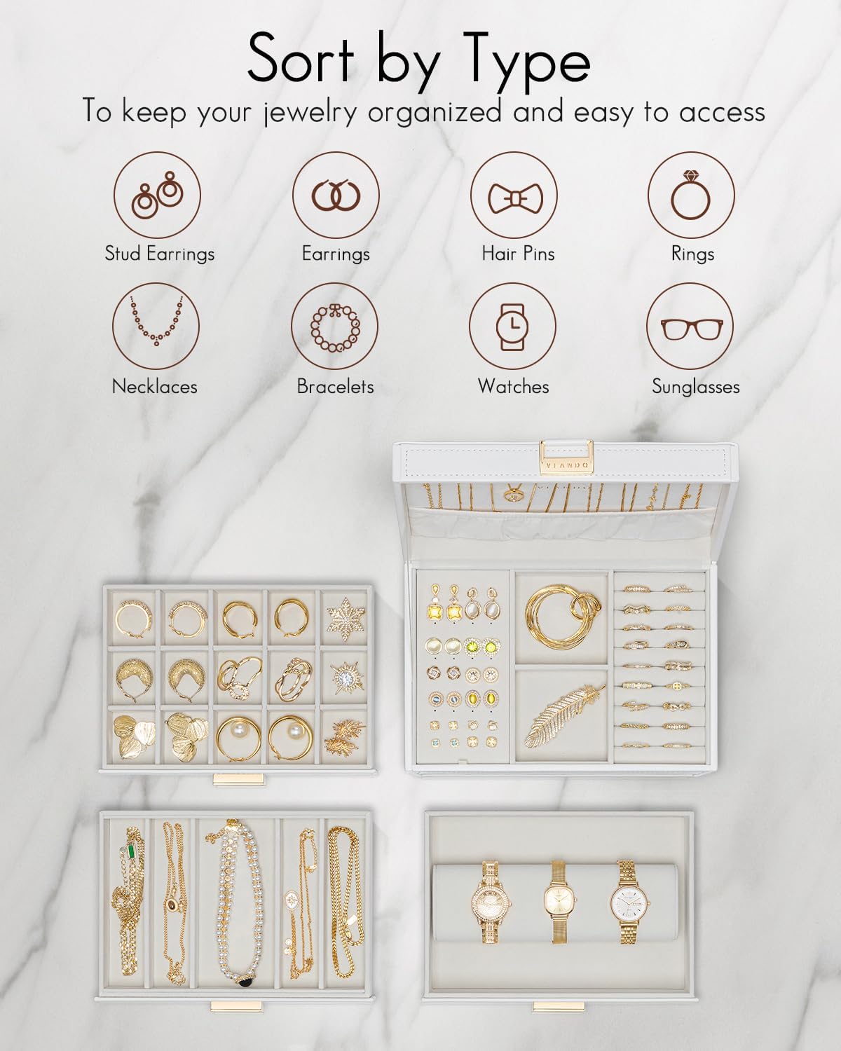 SIMPLE, MODERN AND STYLISH – Large jewelry organizer has a simple and natural look that suits most styles. With a beautiful appearance, it is not only a practical jewelry box, but also a wonderful decoration for your room.