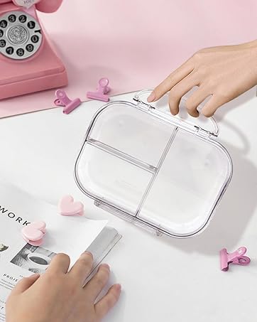 【Keep Lunch Bag Mess–Free Yet Effortless Access】 This bento lunch box features an easy-breathe air vent for effortless opening, while the silicone seal and 4 locking clips ensure airtight and spill-proof. The compact design fits perfectly into lunch bags and backpacks, ideal for school days, office commutes, fitness routines, family outings, and weekend picnic! The 3 compartments keep foods organized (perfect for snacks, sandwiches & fruits!), though we recommend small containers for wet foods like yogurt.