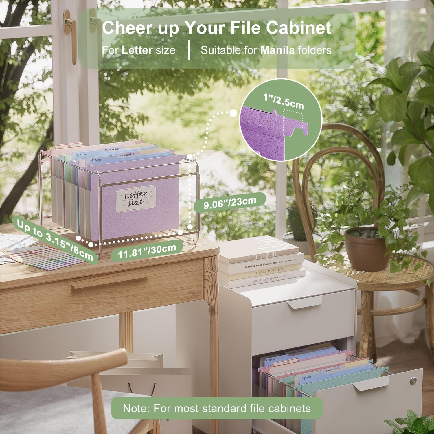 EXPANDABLE POCKET, LARGE CAPACITY:This wheat straw expanding hanging file folder features a single pocket with a bottom that expands up to 3.15″. Designed for Letter-size files and most standard file cabinets (L: 11.81″/30cm, H: 9.06″/23cm, fits MANILA folders). The extended 1″/2.5 cm hooks adapt to more file cabinets. The expandable design grows with your files, preventing wear and tear.