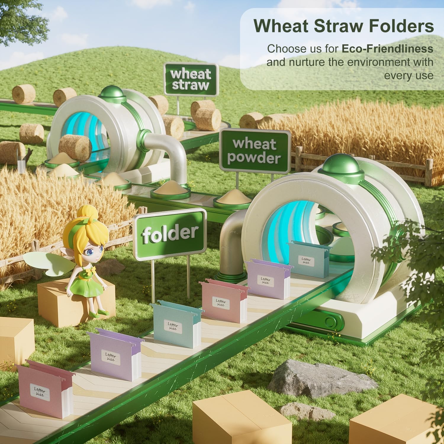 ECO-FRIENDLY & SUSTAINABLE:EcoStash Wheat Straw Hanging File Folders are made from wheat straw, a sustainable agricultural by-product and a renewable resource. By using wheat straw, we reduce reliance on traditional plastics and offer a more environmentally conscious choice. Our wheat straw material is BPA-Free, making it a safer and more sustainable option for your everyday needs.