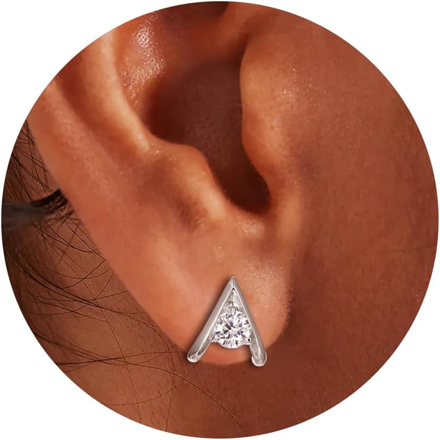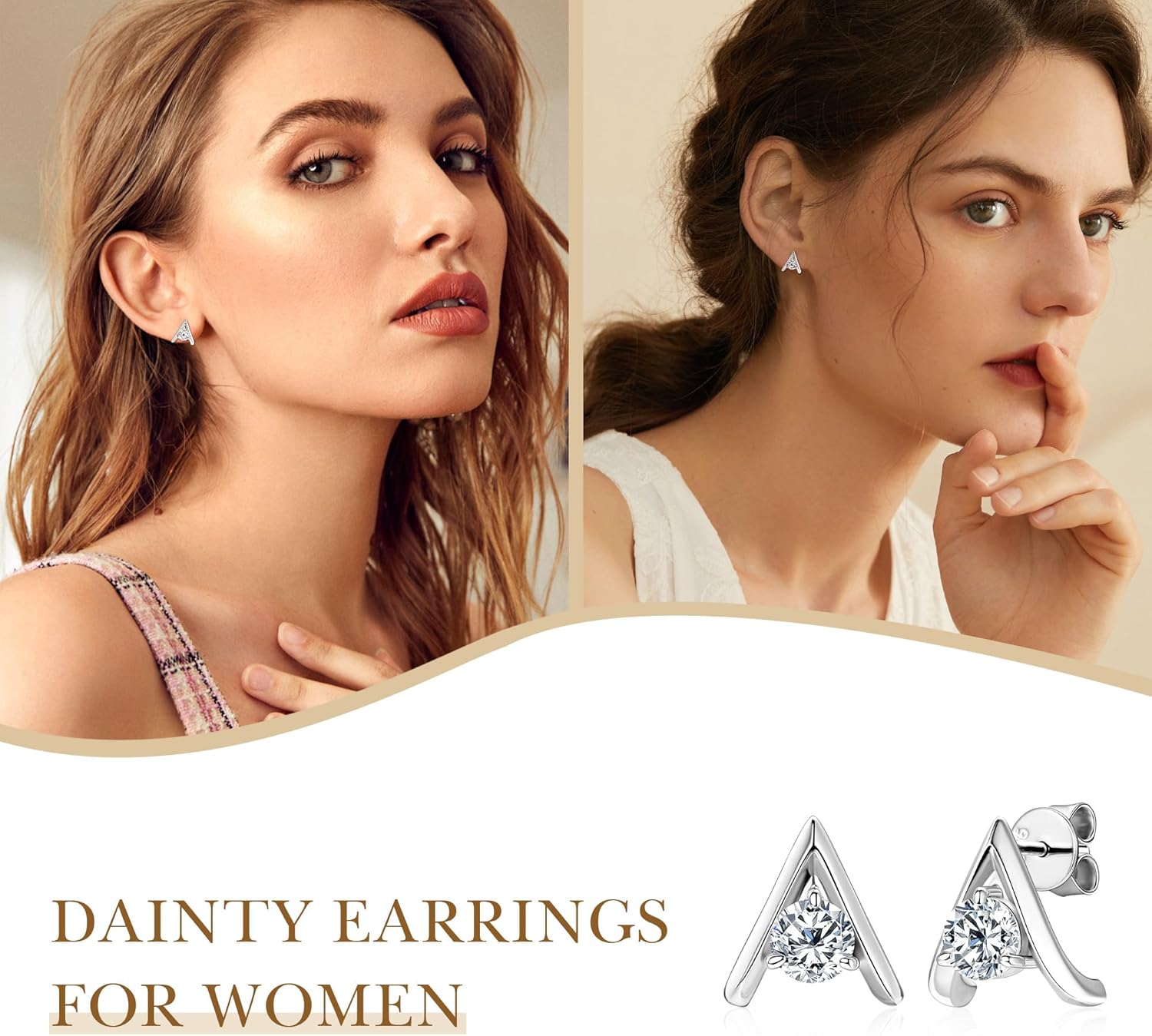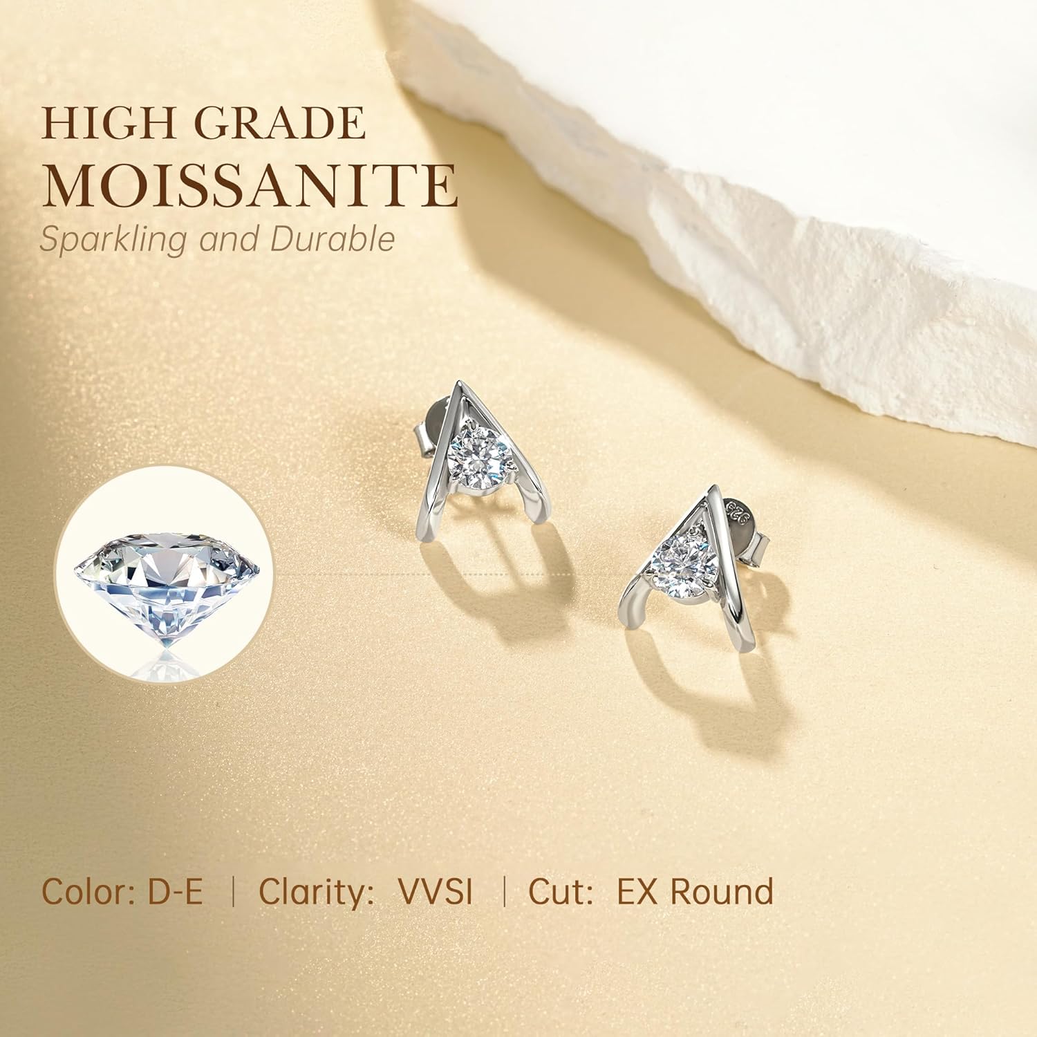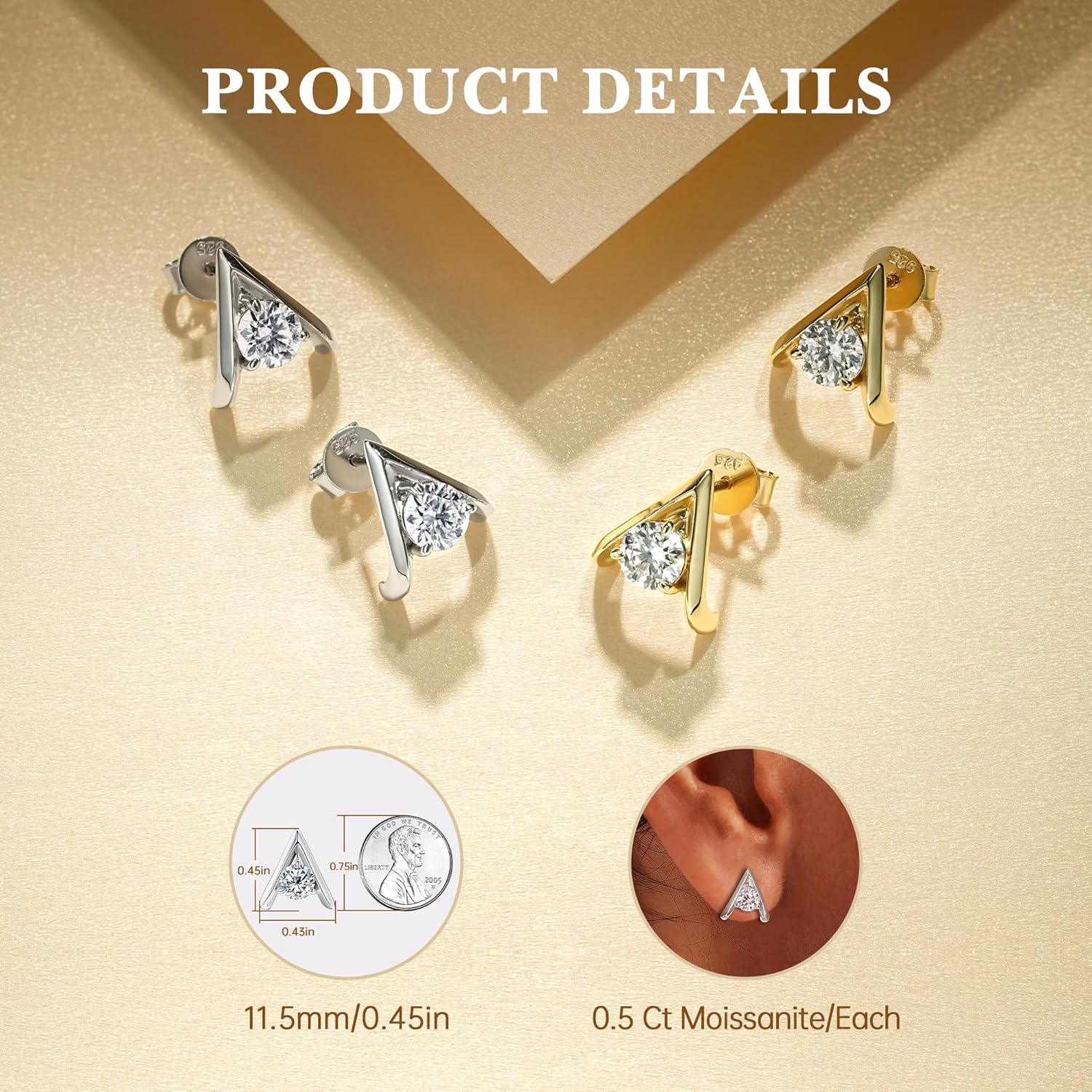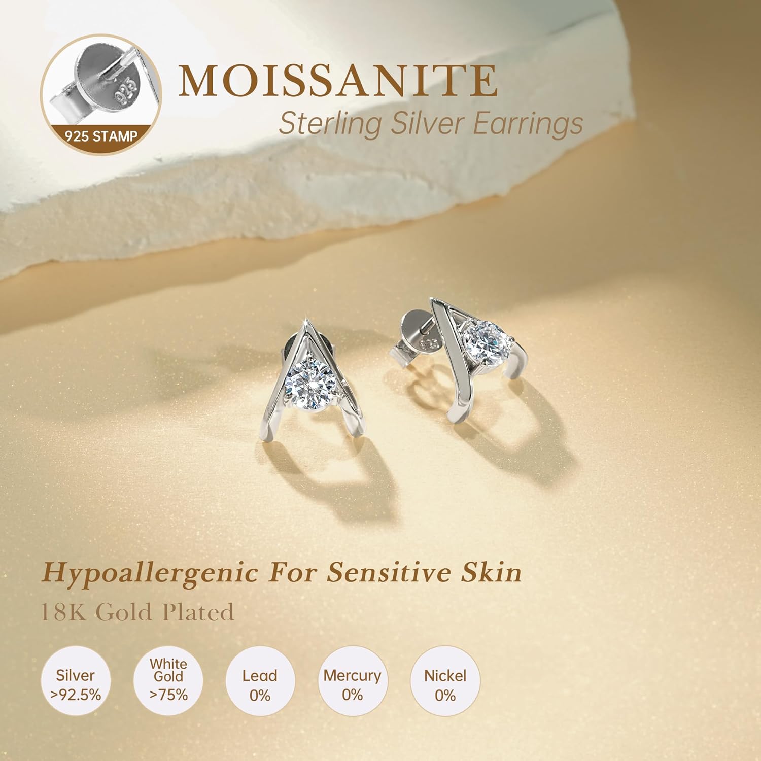 WOAINI A-Curve Stud Earrings in Sterling Silver with 0.5 Carat Solitaire Moissanite, Hypoallergenic Elegant Moissanite Earring Studs for Women, Dainty Jewelry Diamond-Alternative Gifts