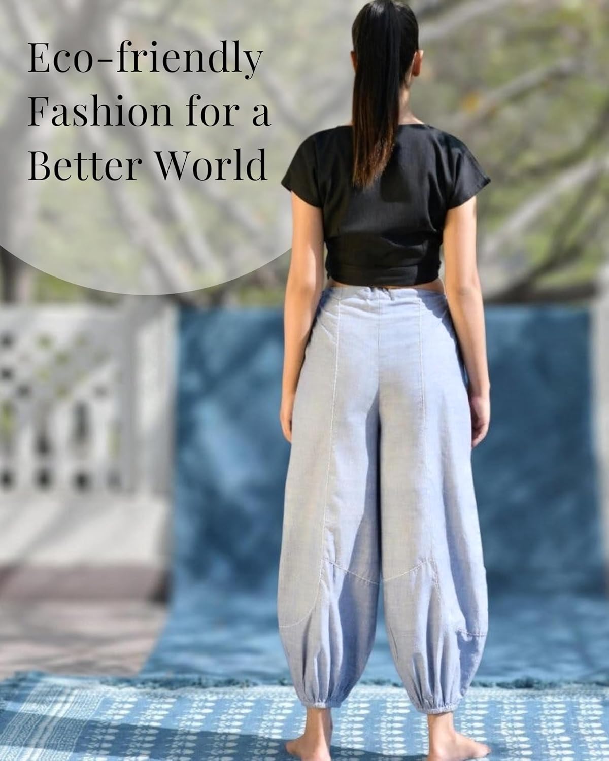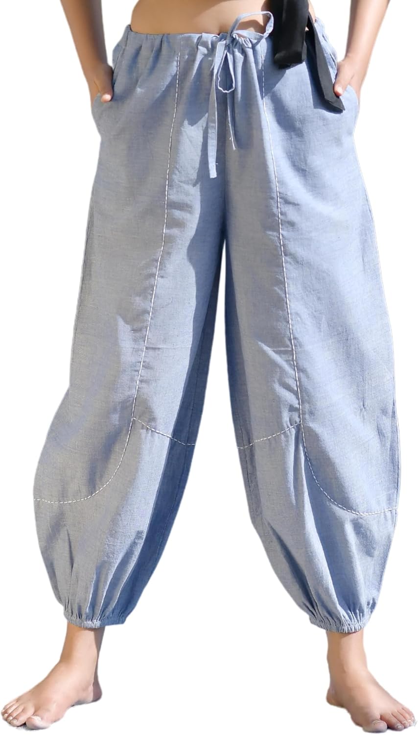 Womens Casual Harem Pants with Pockets | High Waist Yoga Trousers for Women | Handmade Cotton Boho Harem Pants